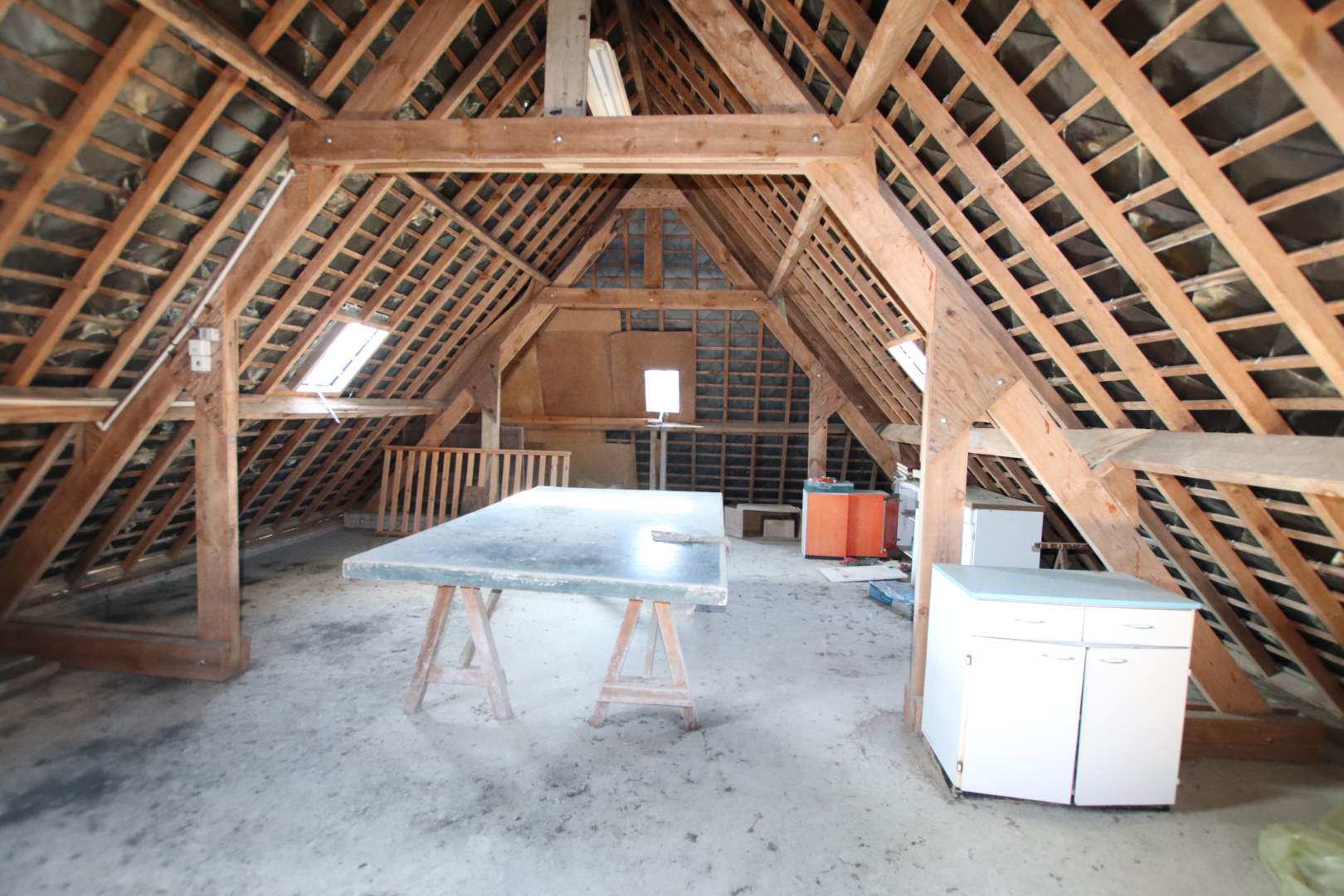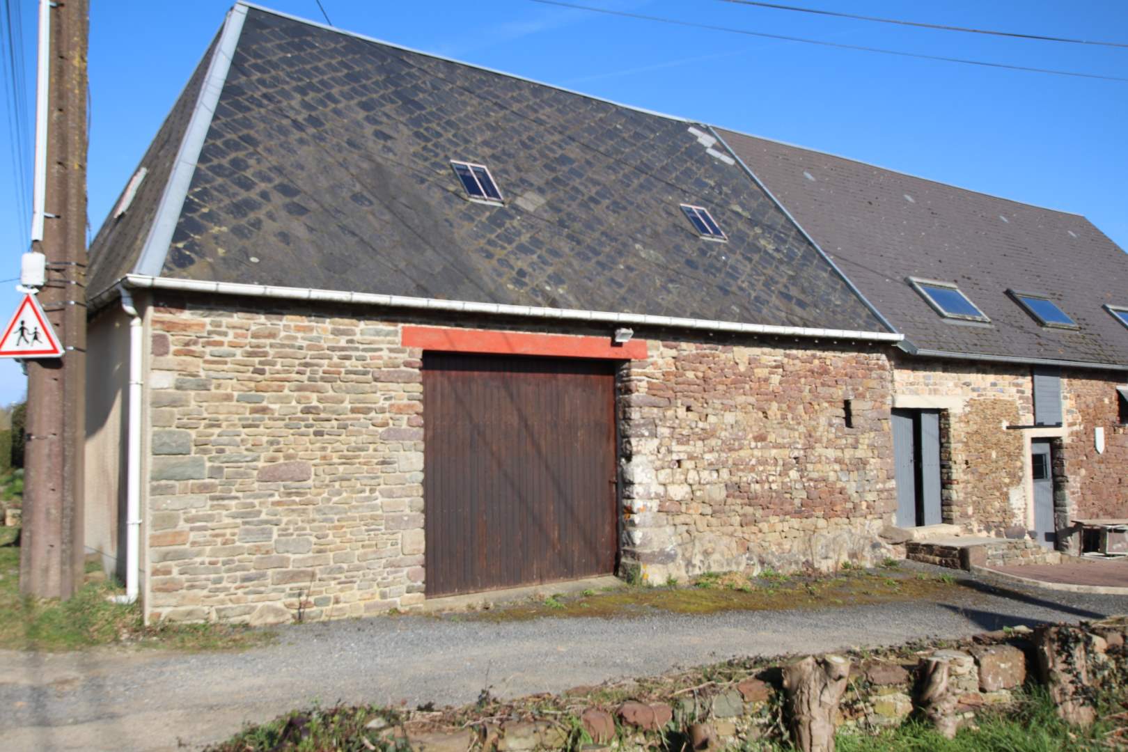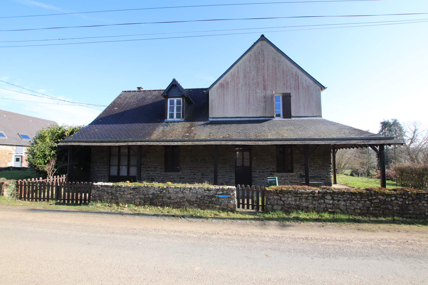 Une maison composée au rez-de-chaussée : entrée, un bureau, salon, véranda, cuisine, salle d'eau, WC, une chambre, un garage, à l'étage : deux chambres, salle de bains, un grenier. En face, autre garage avec partie atelier et un grenier aménageable., Terrain.