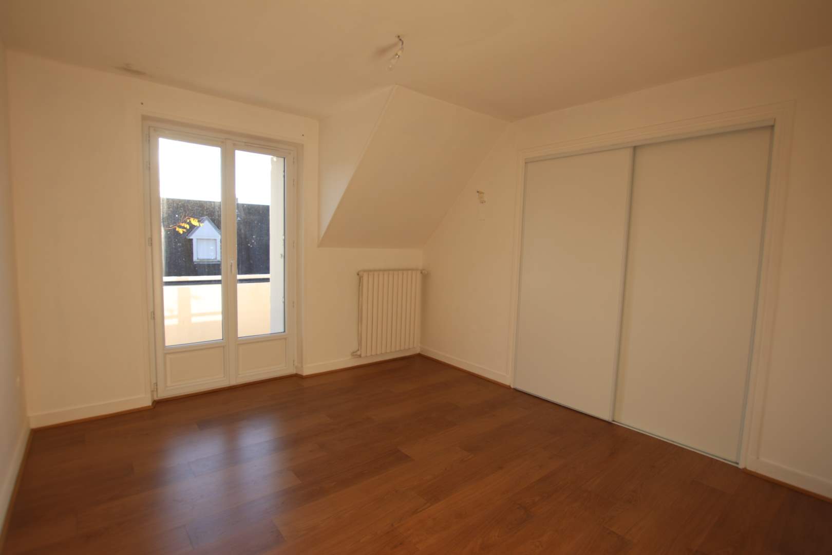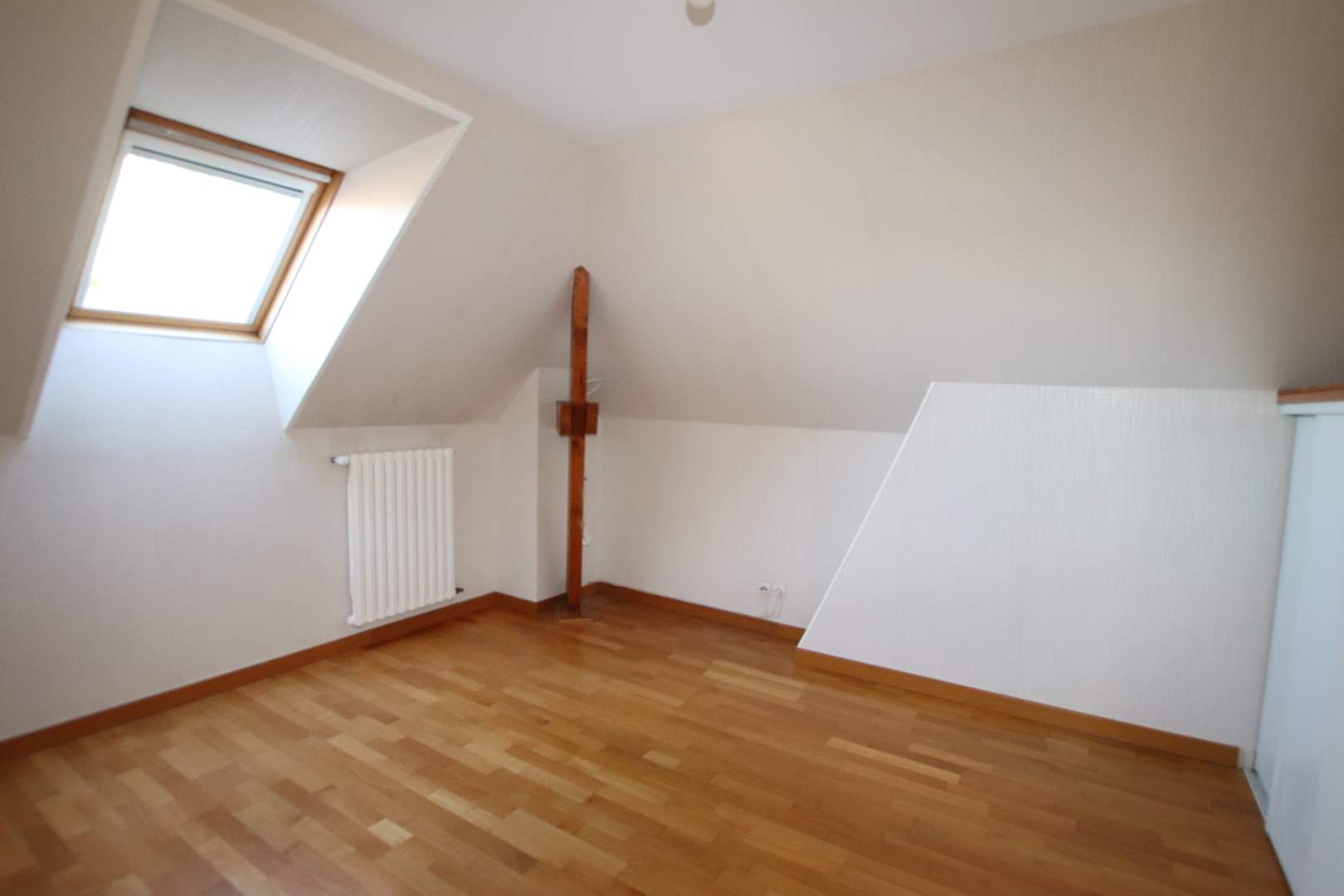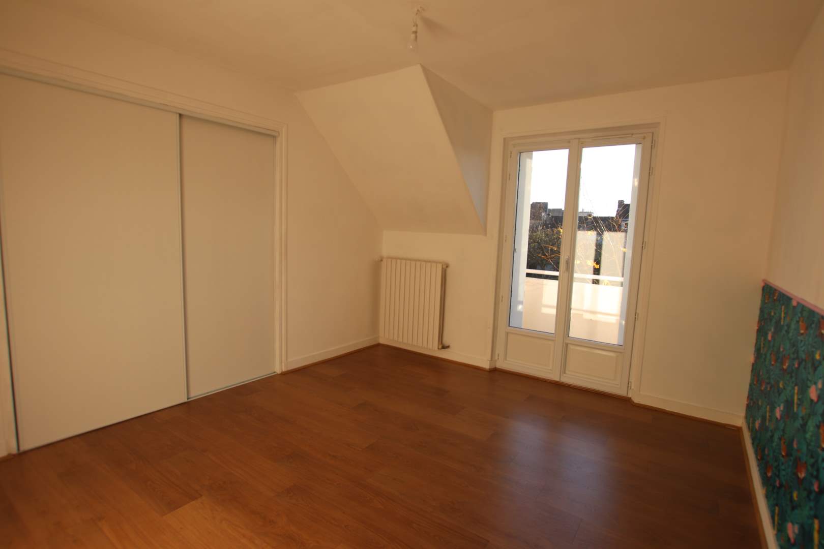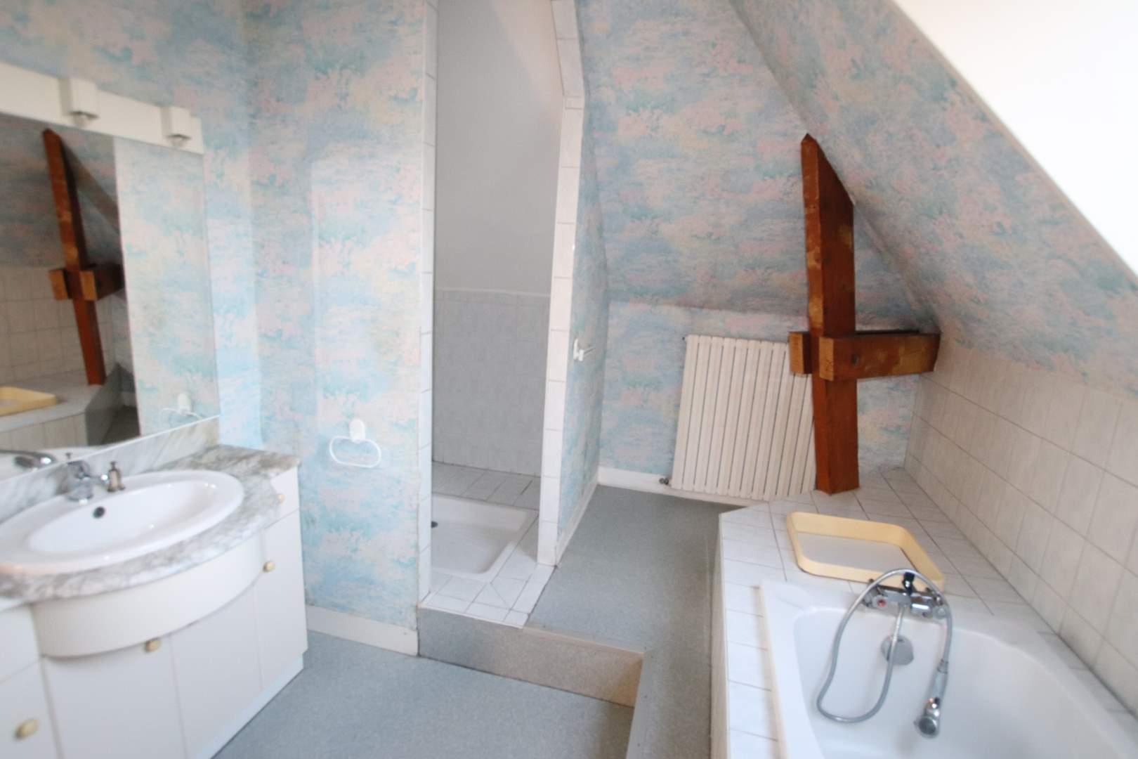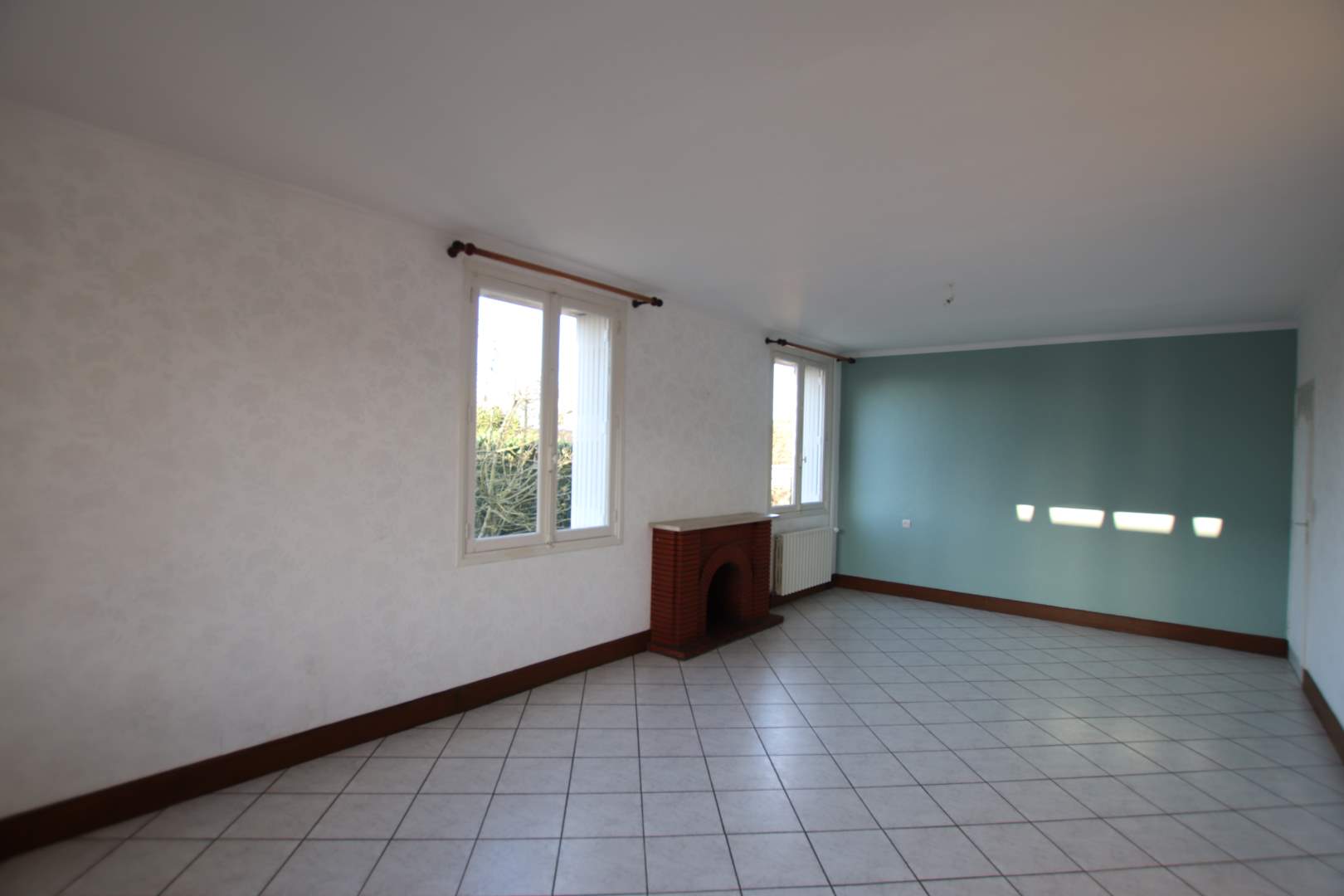 Maison en centre ville, proche des commerces, comprenant au rez-de-chaussée : entrée, séjour/salon, salle de douche, WC, cuisine aménagée avec coin repas, à l'étage, trois chambres, dont 2 donnant sur un balcon, grande salle de bains (baignoire, douche, lavabo), WC. Garage, cellier, cave. Terrain avec cabanon.