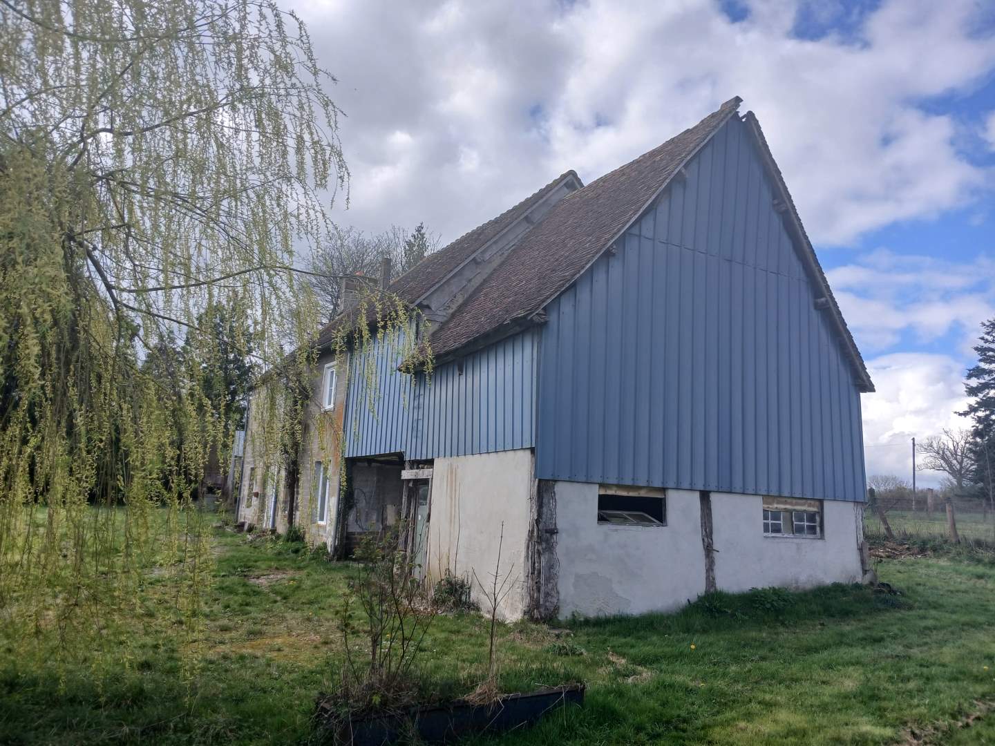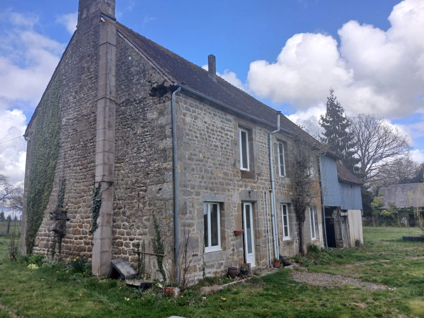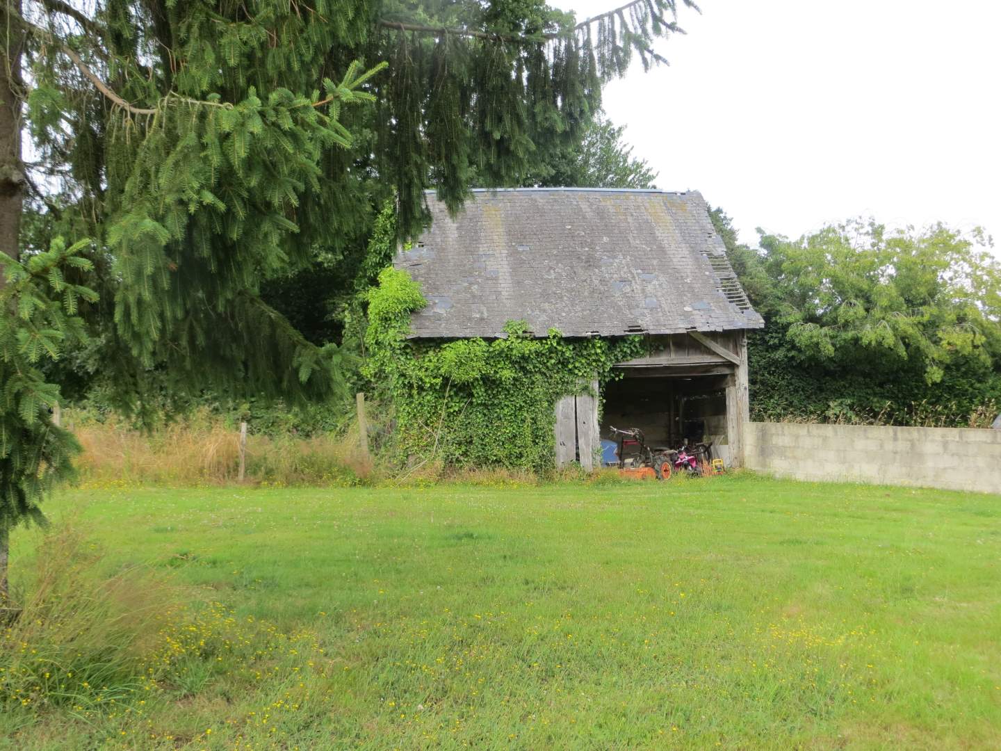 Maison d’habitation comprenant : Cuisine ouverte sur salle à manger/salon avec cheminée et insert. A l’étage : trois chambres, salle d’eau avec wc. Cave, abri de jardin, dépendance. Terrain