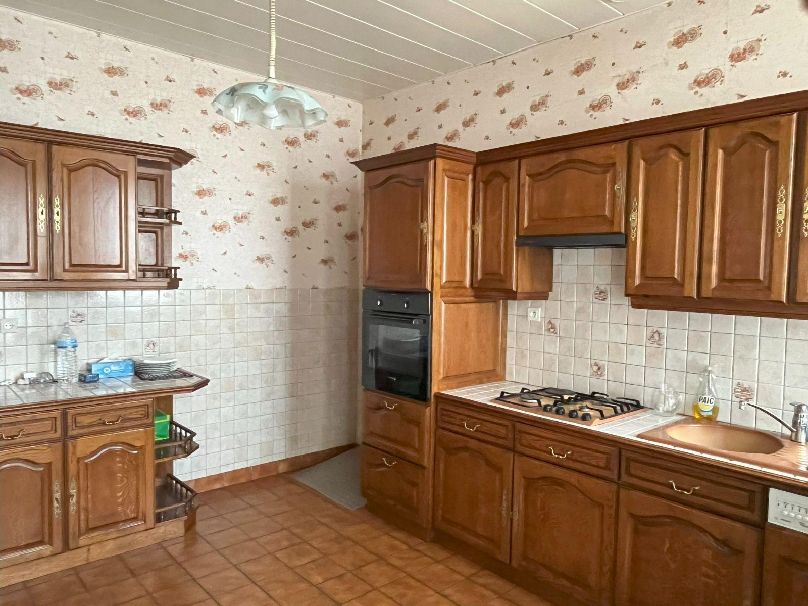 Elle est composée au rez-de-chaussée d'un grand séjour, cuisine aménagée indépendante, dégagement, wc, salle d'eau et arrière cuisine.