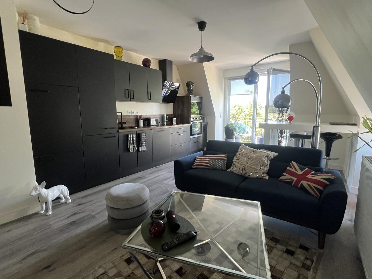 BRETTEVILLE SUR ODON - Proche commerces, dans résidence de Standing, magnifique 2 pièces de 52 m2, sis au dernier étage de la résidence avec ascenseur de plain pied, comprenant entrée avec placards, cuisine aménagée & équipée ouverte sur séjour, chambre avec dressing, salle d'eau avec wc buanderie. Normes PMR. Balcon SUD OUEST. Charges individuelle gaz. 80 € mensuel. Parking extérieur privatif. PARFAIT ETAT. DPE : B