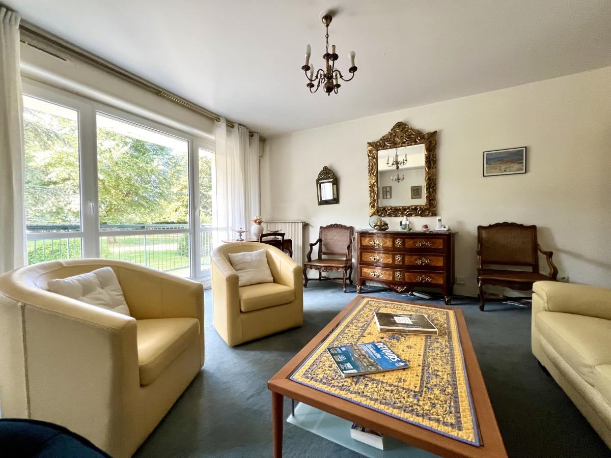 Appartement F4 de 85 m² comprenant entrée, cuisine, séjour salon de 33 m² avec balcon de 14 m² exposé sud, vue dégagée sur le parc, dégagement avec placards, wc, salle d'eau, deux chambres. Une cave. Une place de parking. Un GARAGE.