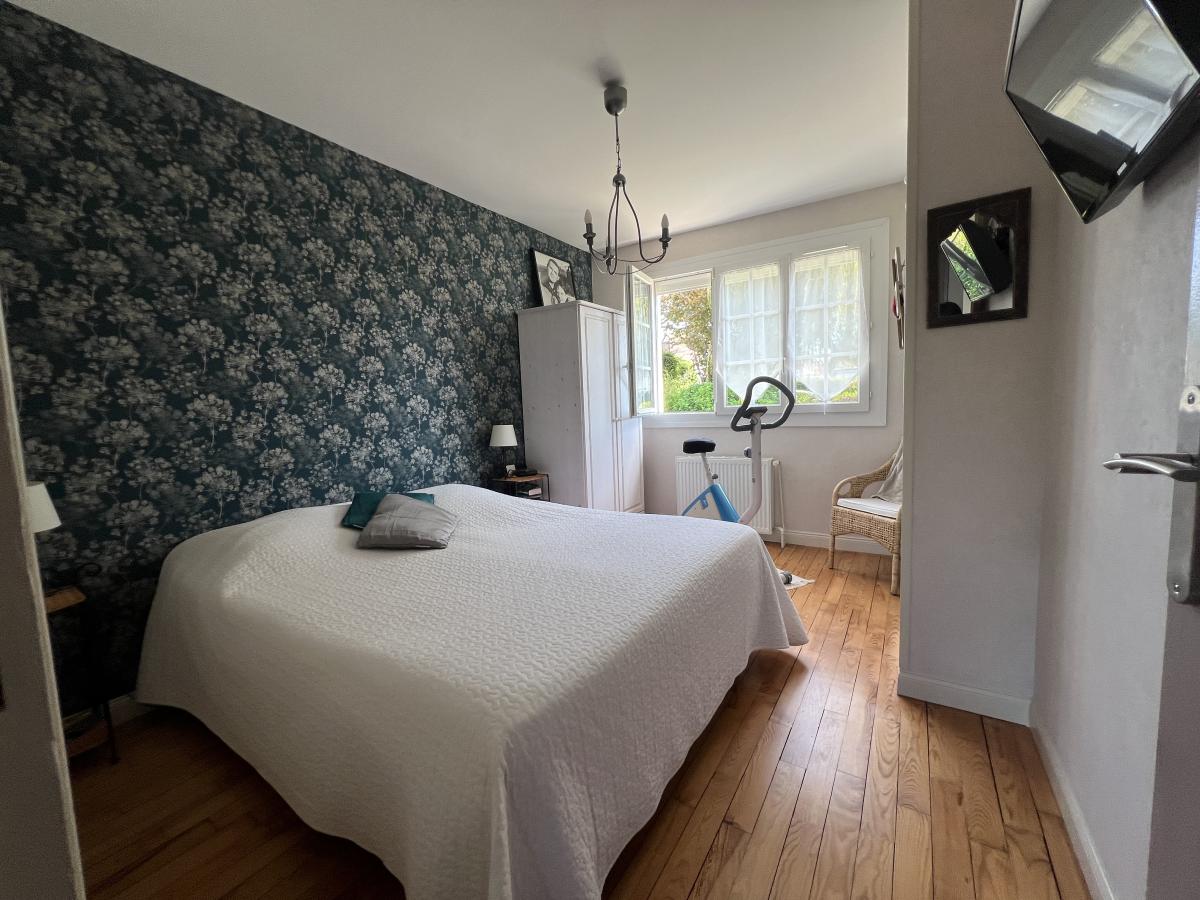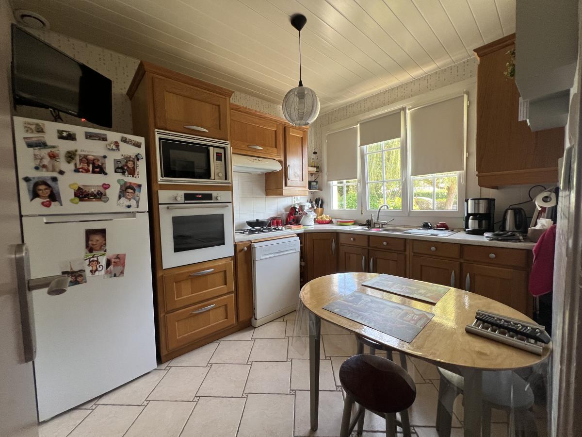 CAEN RIVE GAUCHE proche rue d’Authie, Quartier calme et recherché, charmante maison mitoyenne de plain pied surélevé comprenant entrée, séjour salon 26 m2, belle véranda de 14 m2, cuisine aménagée, 2 chambres, salle de bains, wc. Sous sol complet avec chambre et salle d'eau, bureau, buanderie, garage. Fenêtres PVC avec volets roulants solaire. Combles en partie aménageables. Terrain sans vis à vis de 580 m2 avec dépendance. Très bon état général. DPE : E