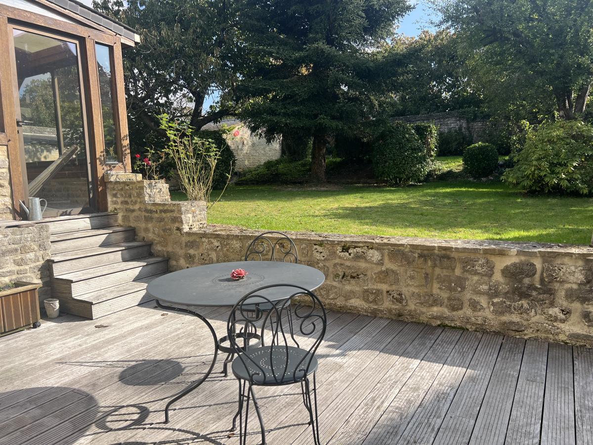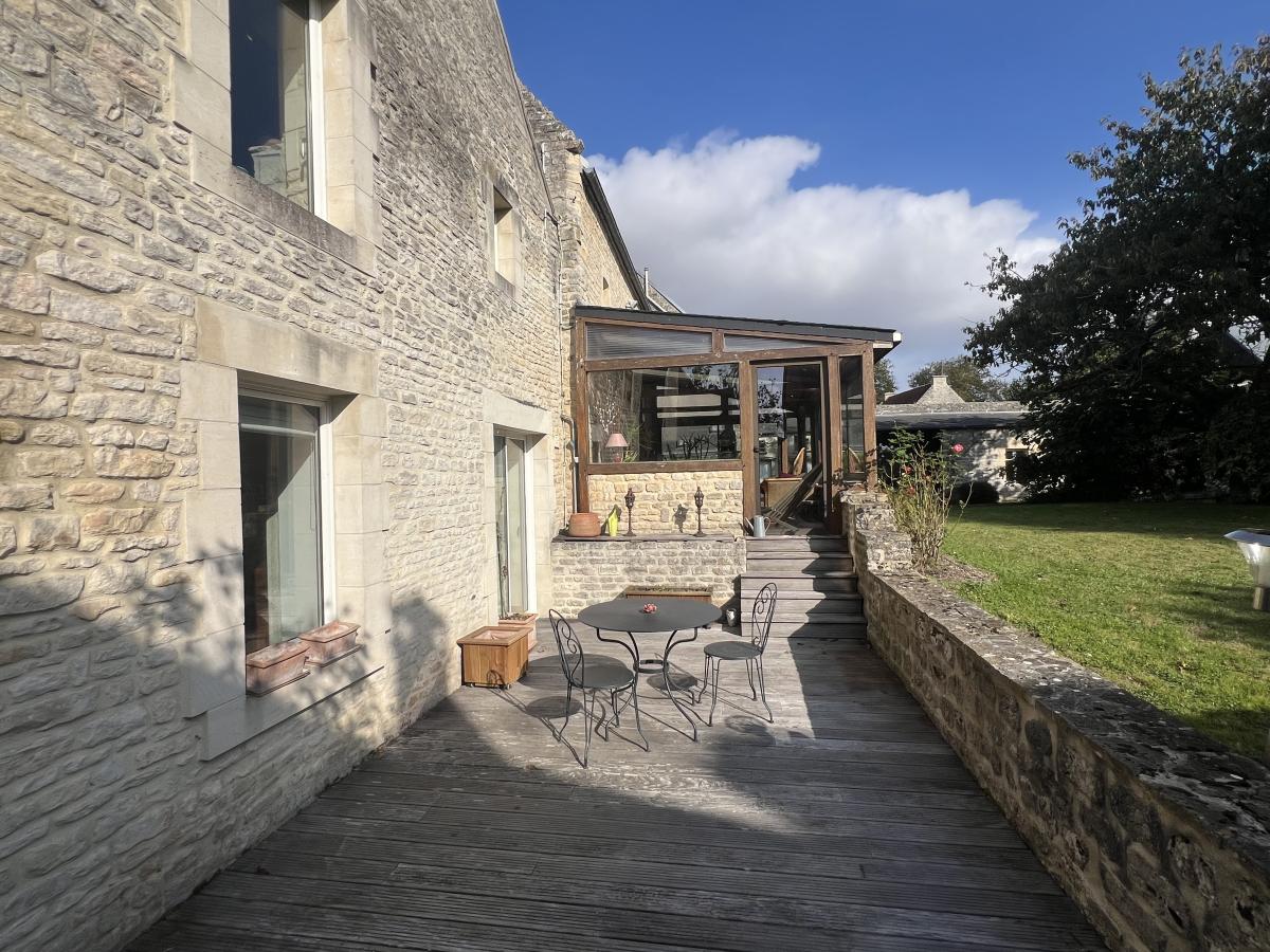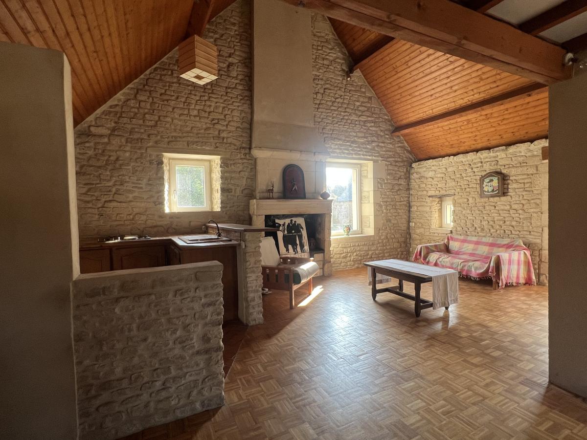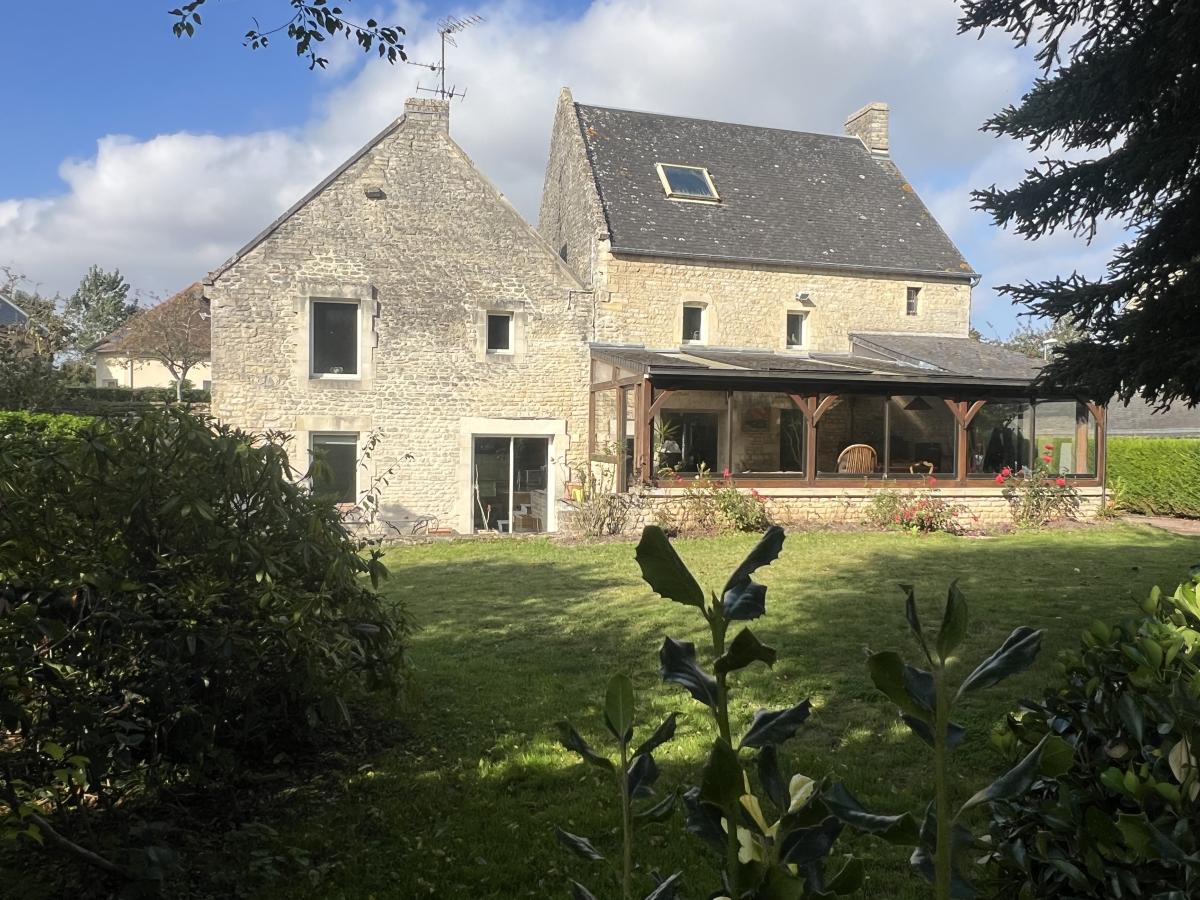 NORD OUEST DE CAEN - Commune du FRESNE CAMILLY - Ravissante maison en Pierre d'environ 150 m2, comprenant au rez de chaussée, séjour salon avec cheminée 35 m2, cuisine aménagée, chambre, salle d'eau récente, wc, véranda, buanderie, à l'étage, chambre avec salle de bains et bureau, studio avec espace cuisine, salon et chambre. Pièce de 25 m2 à aménager sous combles. Bon état général. Magnifique jardin clos sans vis à vis avec dépendance. Assainissement individuel à revoir. DPE : F