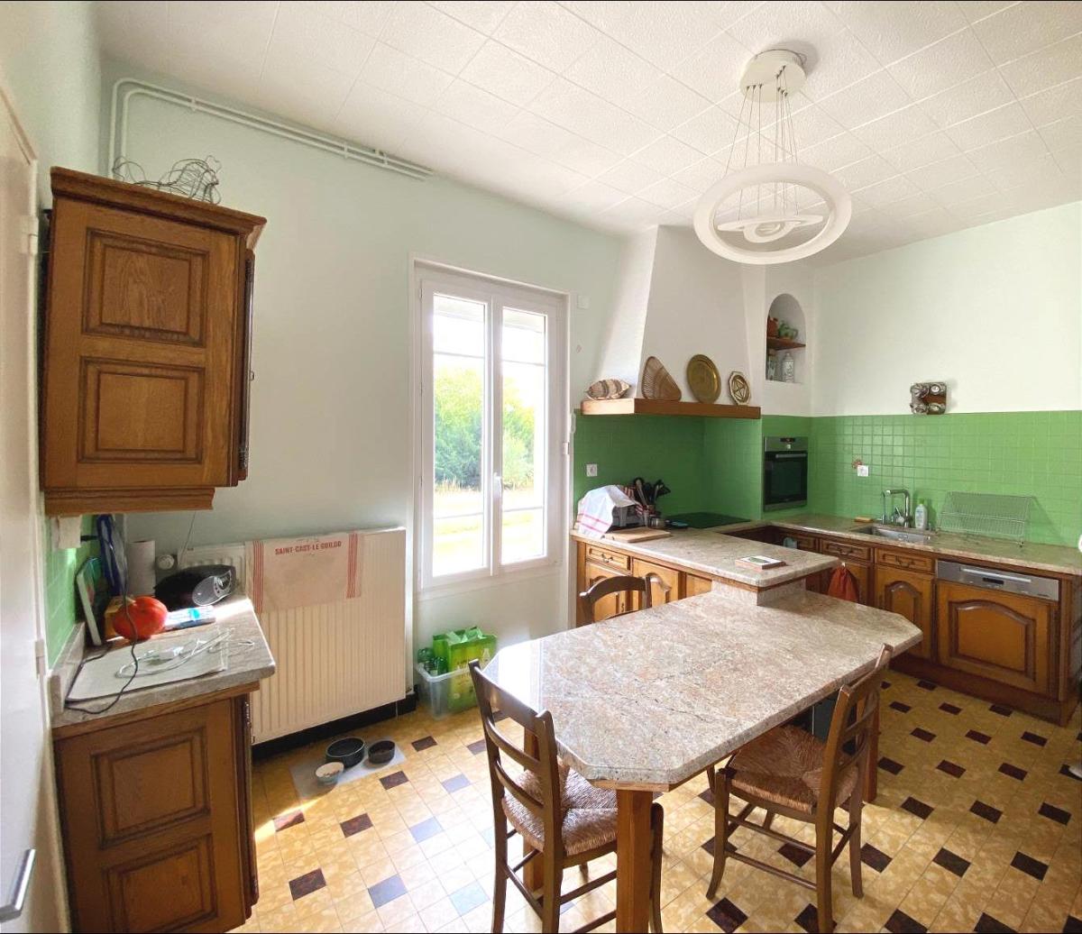 DOUVRES LA DELIVRANDE - TOUT PROCHE CENTRE Au cœur d'un parc de 4 404 m² (dont une partie est constructible), superbe maison de Maître comprenant : Au rez-de-chaussée : entrée, séjour salon avec cheminée insert, cuisine aménagée et équipée, dégagement avec placard, salle d'eau, WC. Au premier étage : palier, trois chambres dont une avec salle de douche et WC, dressing. Au second étage : palier, trois chambres. Cave sur l'ensemble. Prévoir des travaux de rénovation. Dépendances comprenant un atelier, un bâtiment avec étage, cinq emplacements couverts de parking Les informations sur les risques auxquels ce bien est exposé sont disponibles sur le site Géorisques : www. georisques. gouv. fr Consultez nos tarifs : https://www.douvres-notaires.com/tarif/