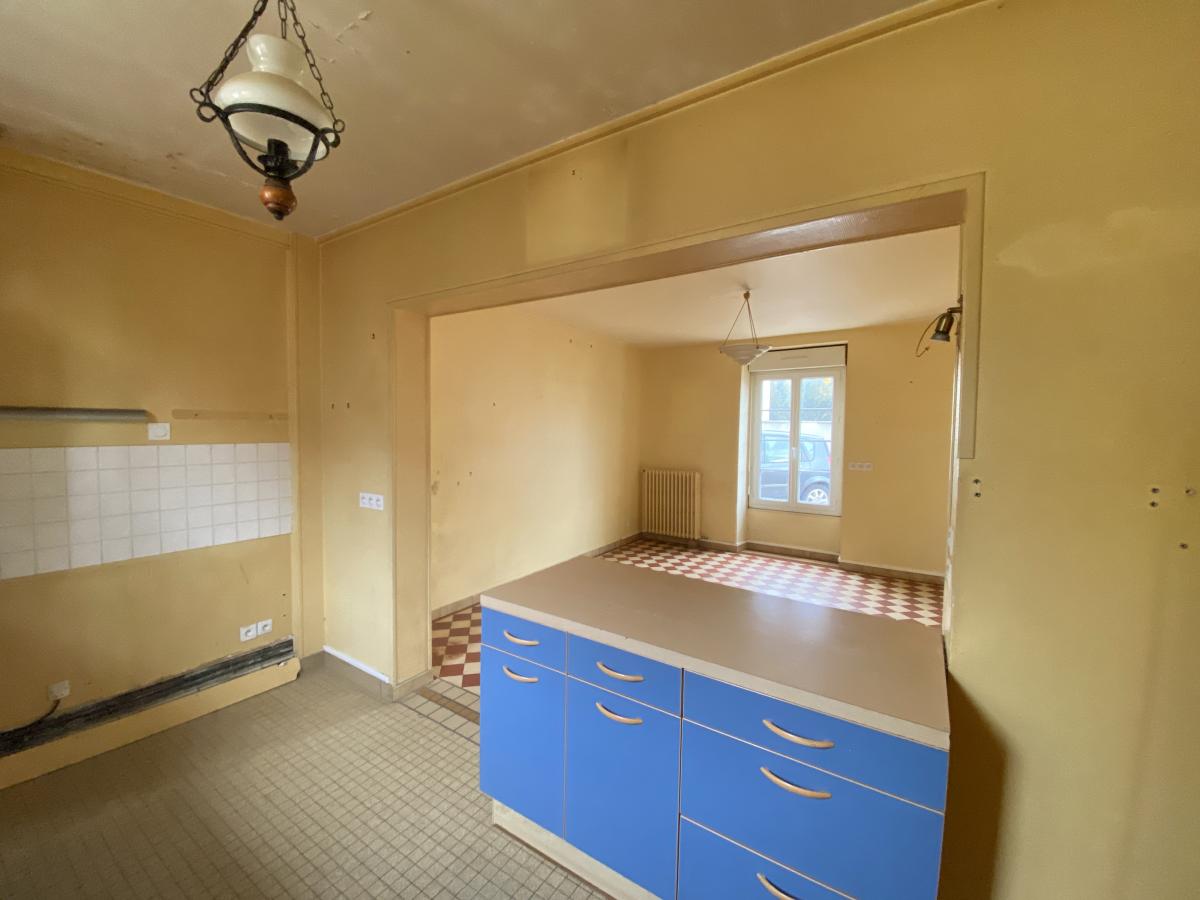 Idéalement située au cœur d'un village bord de mer, Maison ancienne composée au rez-de-chaussée d'un séjour salon avec cheminée, cuisine ouverte et salle à manger, WC.