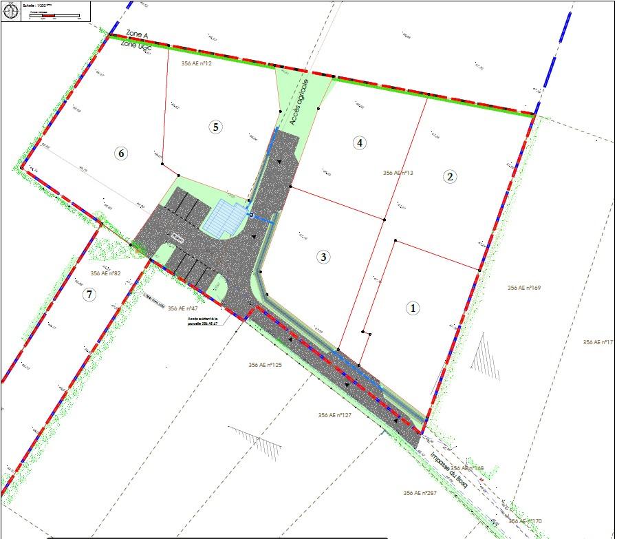 - Lot 6 : 776 m² environ - Borné - viabilise (eau-telecom-edf) prix net : 142 300 € RÉSERVÉ