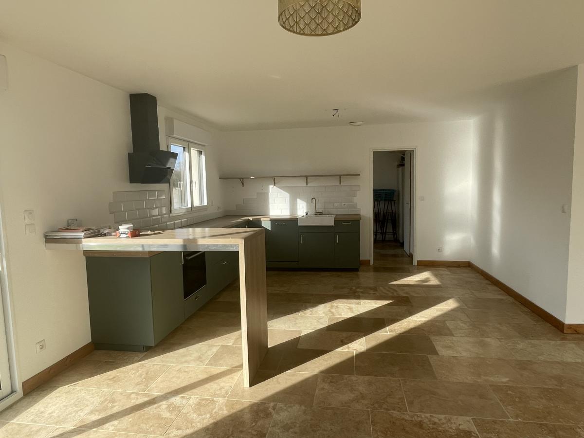 Vous découvrirez une belle pièce de vie lumineuse avec salon/séjour ouvert sur une cuisine aménagée et équipée, idéale pour des moments conviviaux. Une arrière-cuisine/buanderie complète cet espace pratique au quotidien.