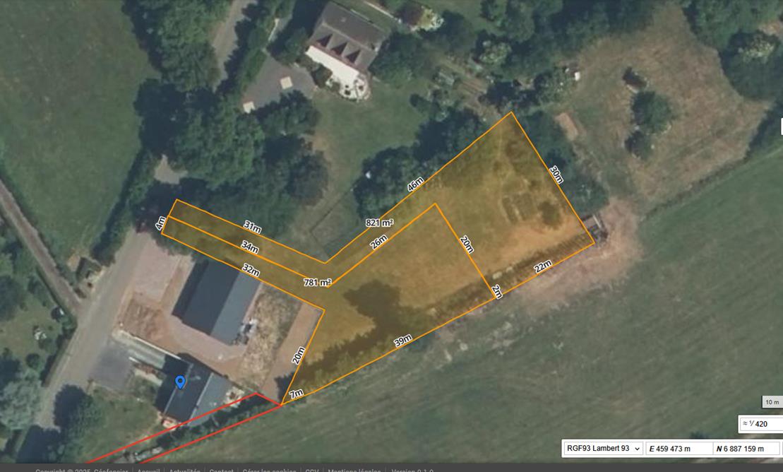 CHEZ  DES NOTAIRES A MES COTES  GOUVIX  15 Min entrée de CAEN 2 Parcelles de terrain constructible environ 781 m²  et  environ 711 m²Non viabilisées ( raccordement  Eau  et Tout à l 'égout  à charge de la MAIRIE).