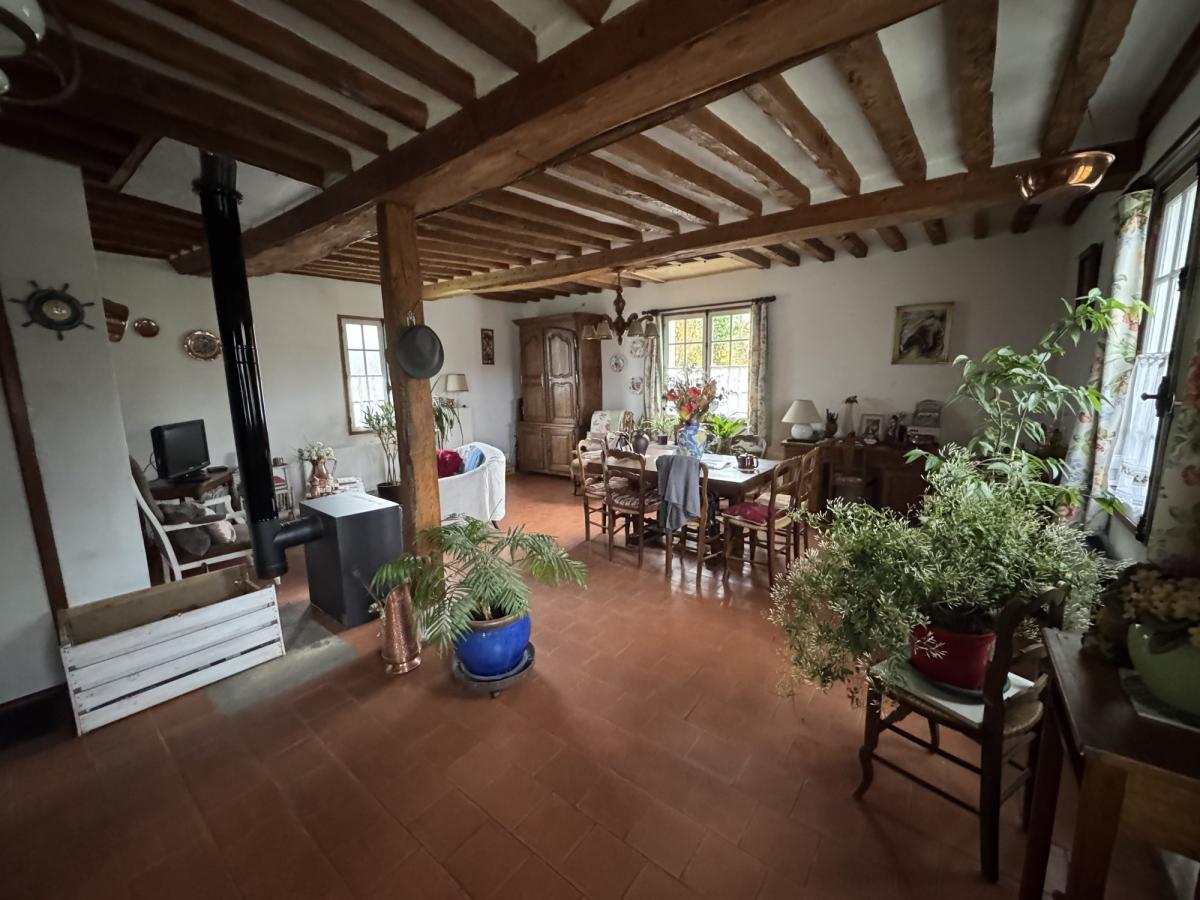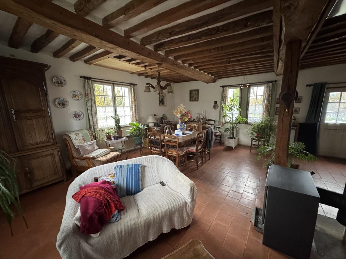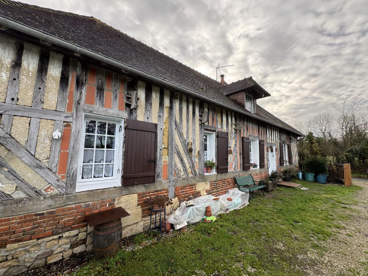 VIAGER OCCUPE Femme de 88 ans MEZIDON VALLEE D'AUGE (Le Mesnil Mauger) Maison normande d'environ 95m² de plain-pied comprenant: Séjour-salon de 37m², cuisine, couloir, deux chambres, bureau, salle de bains, wc et cellier Grenier au-dessus Terrain plat de 680m²  Rente mensuelle 480€