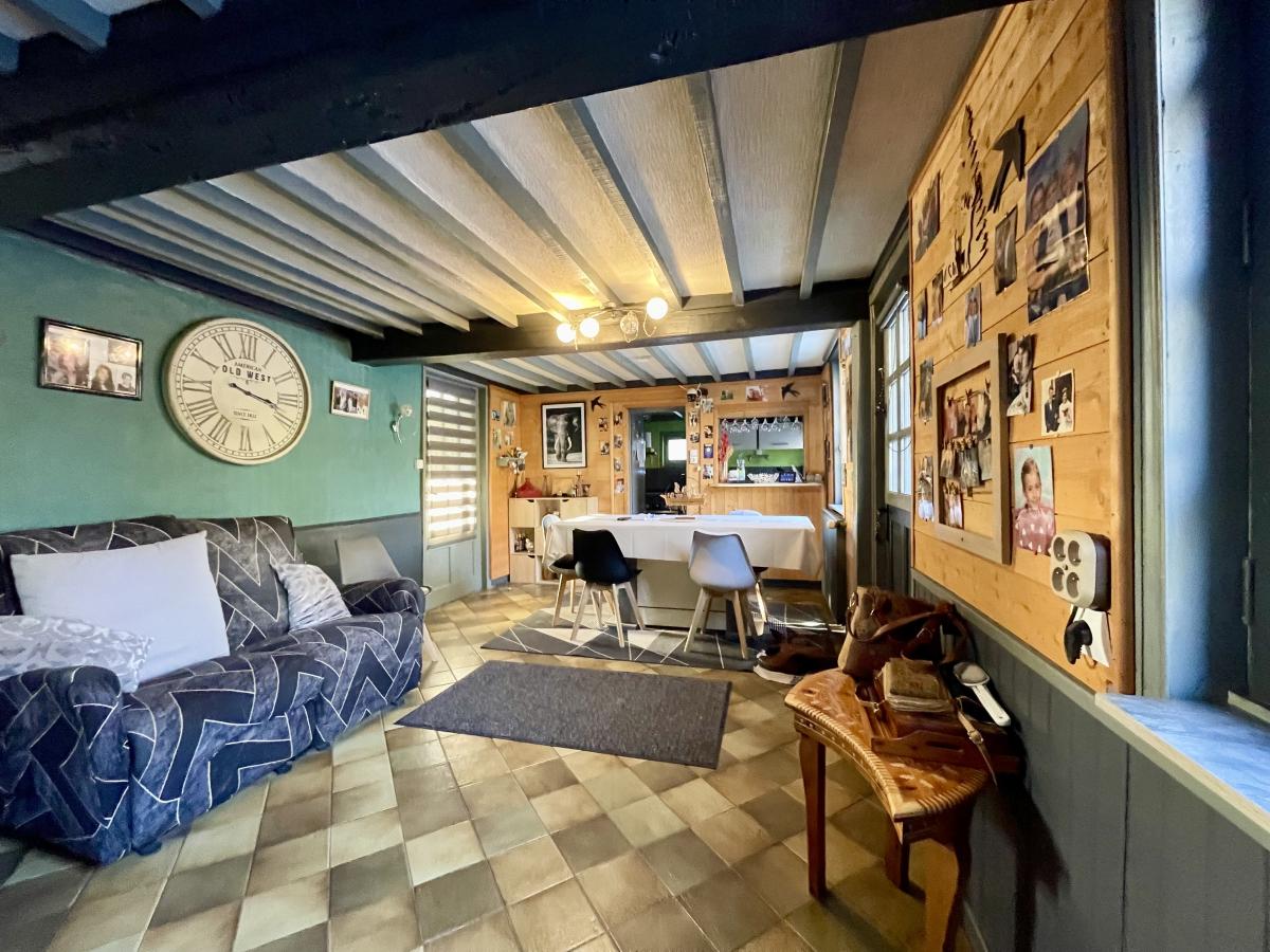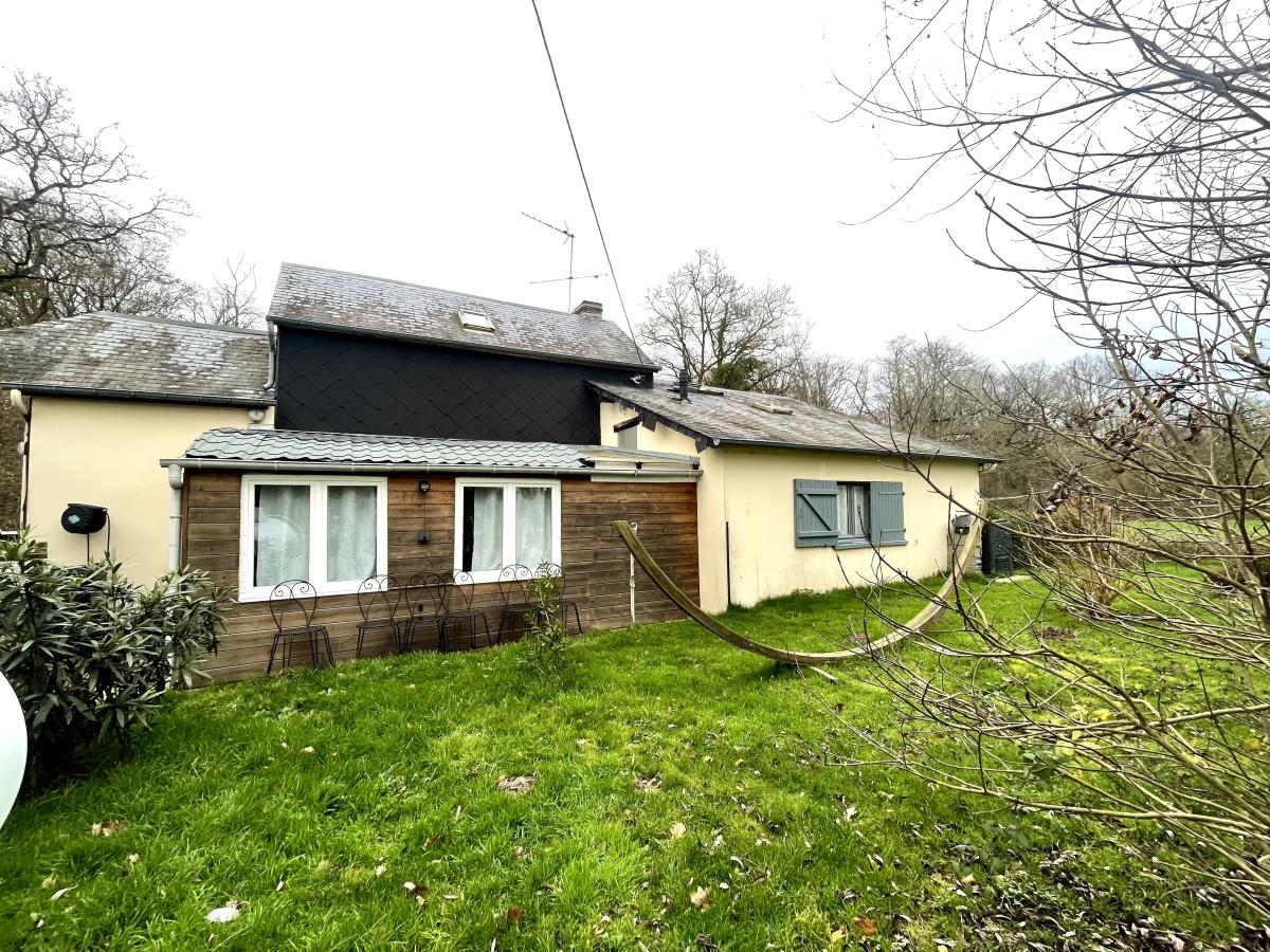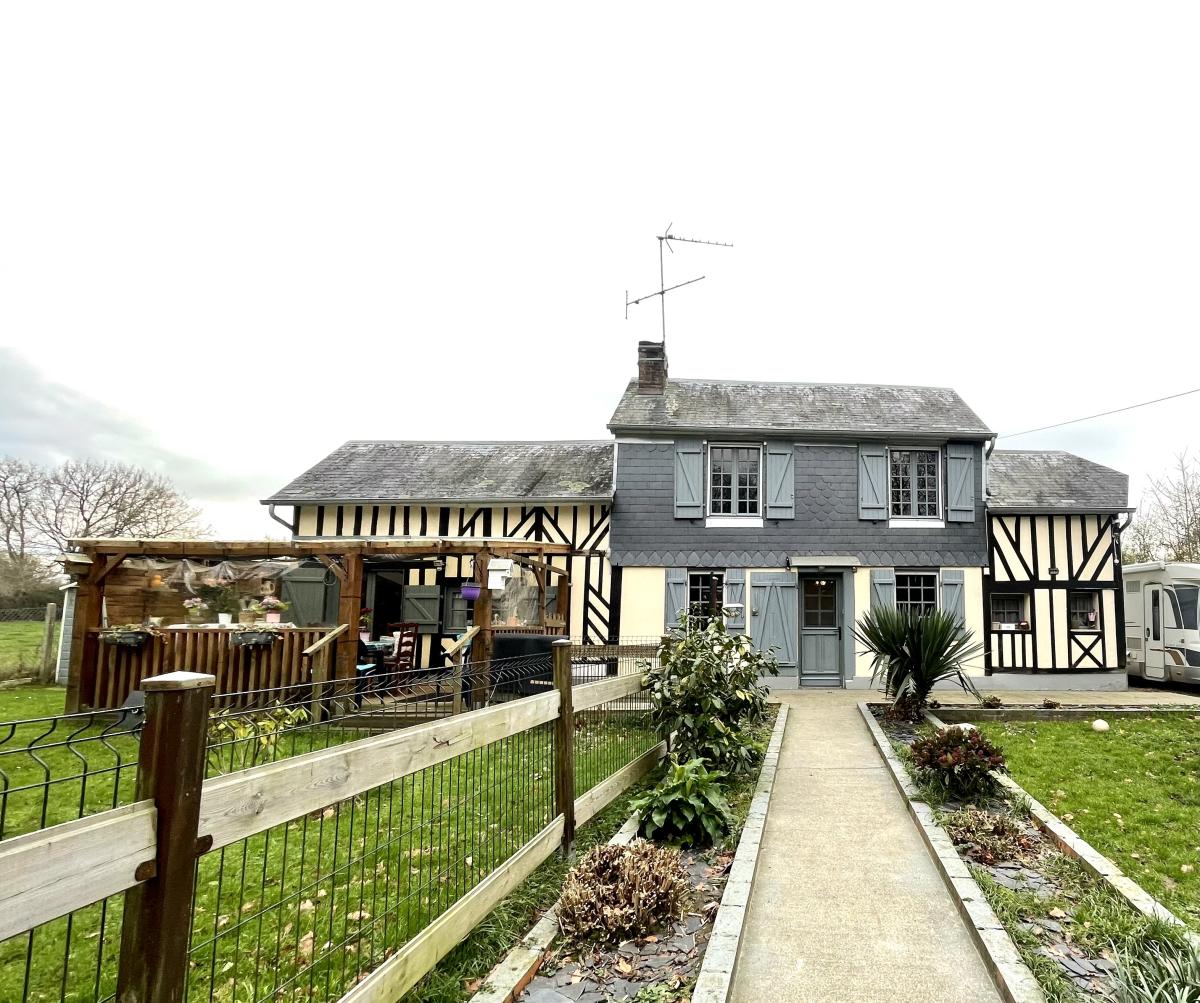 Au calme , Maison normande comprenant : Au rez-de-chaussée Séjour avec cheminée , cuisine aménagée et équipée, autre salon , une chambre , une salle d'eau avec wc , deux pergolas . A l'étage une salle de bains , deux chambres en enfilade et dressing Garage