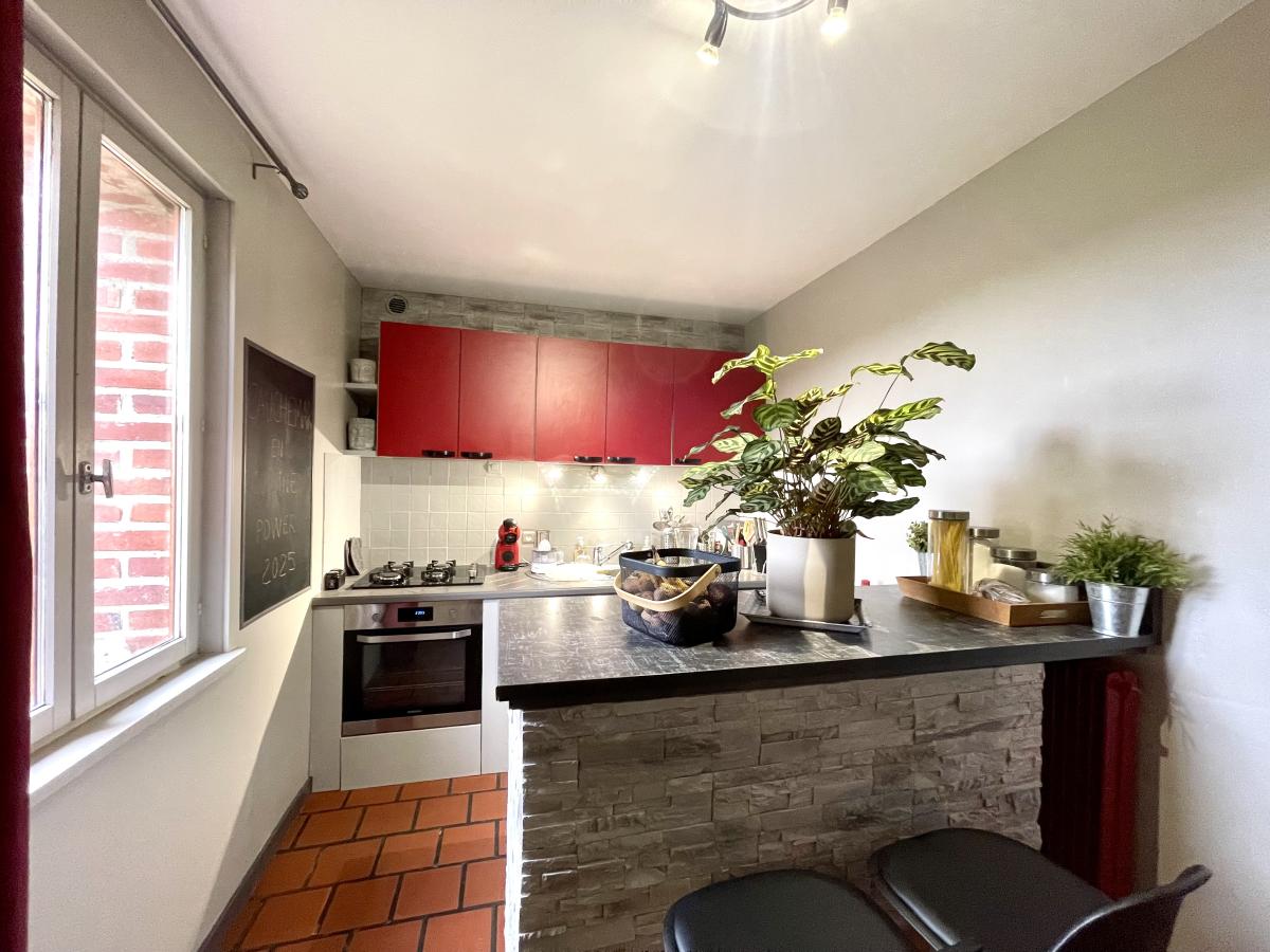 -Au rez-de-chaussée entrée desservant cuisine aménagée et équipée , séjour avec cheminée, salle d'eau avec wc .