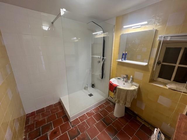 Entre Orbec et Lisieux, jolie propriété normande dans un bel environnement construite en briques et silex et couverte en tuiles comprenant :