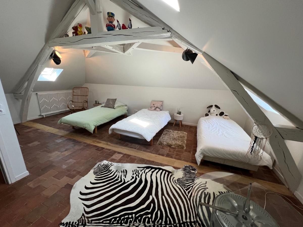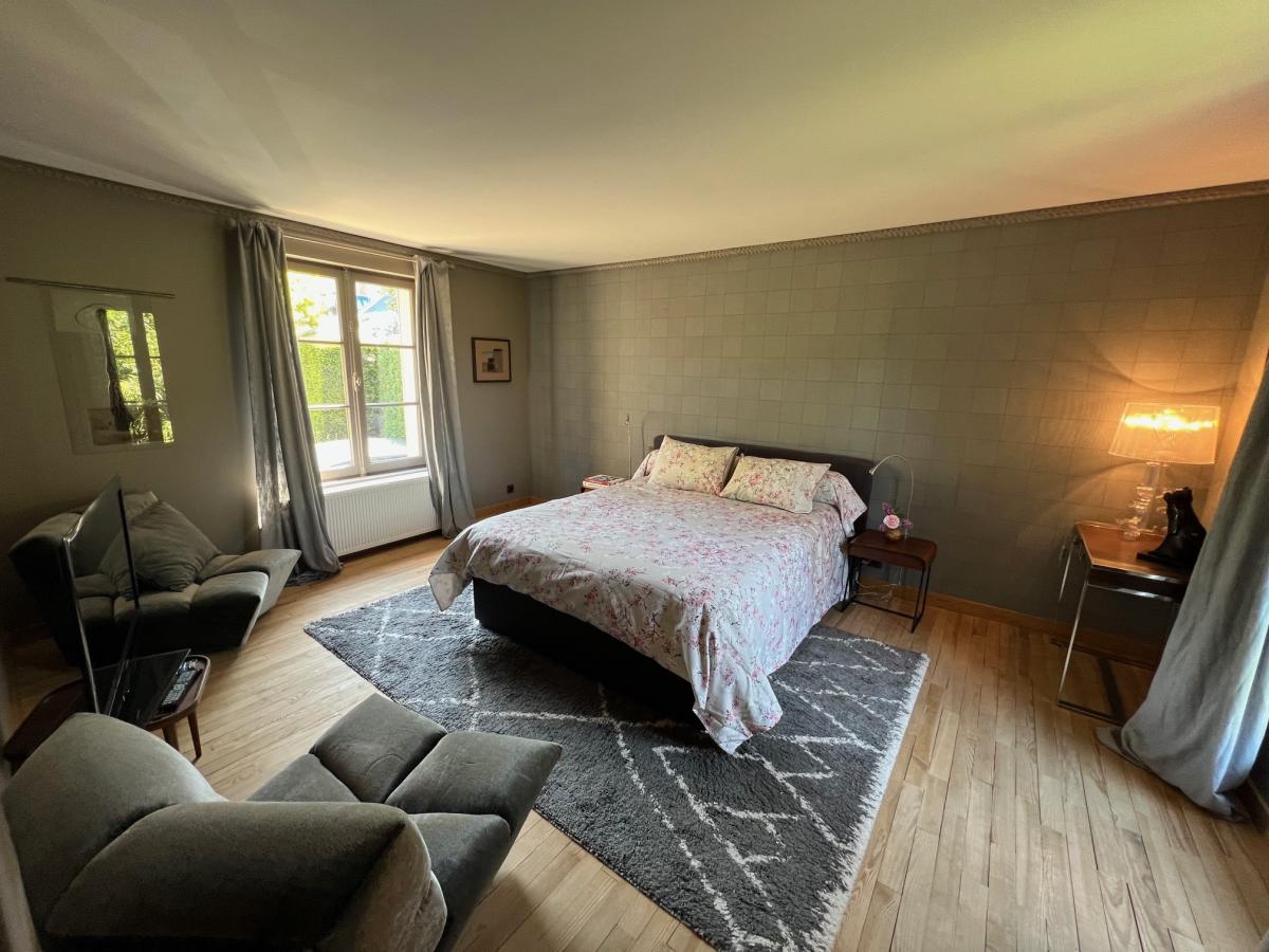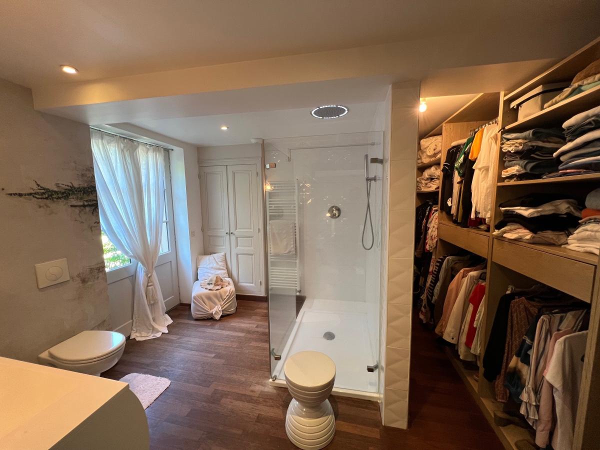 - Au 2 ème étage : suite parentale avec salle d'eau et wc, grenier buanderie avec chaufferie gaz de ville.