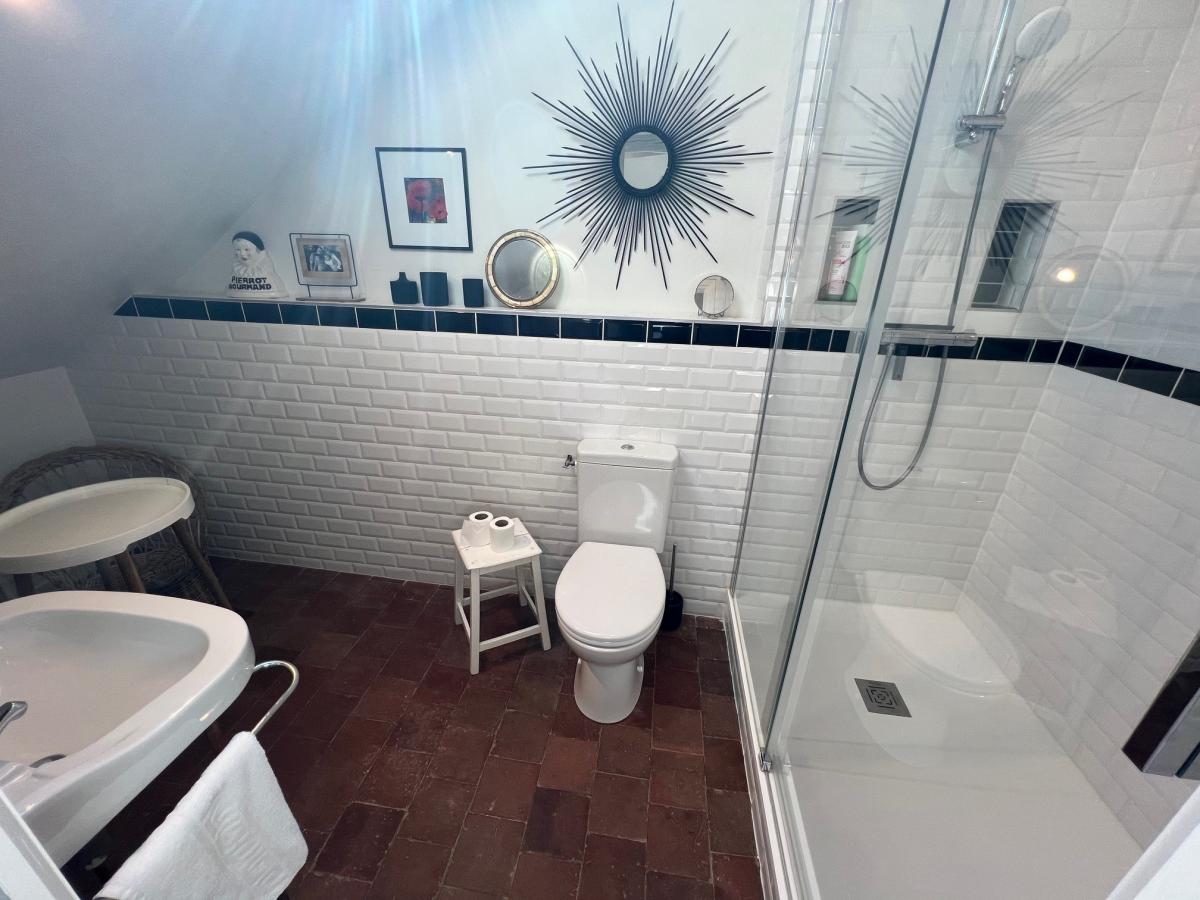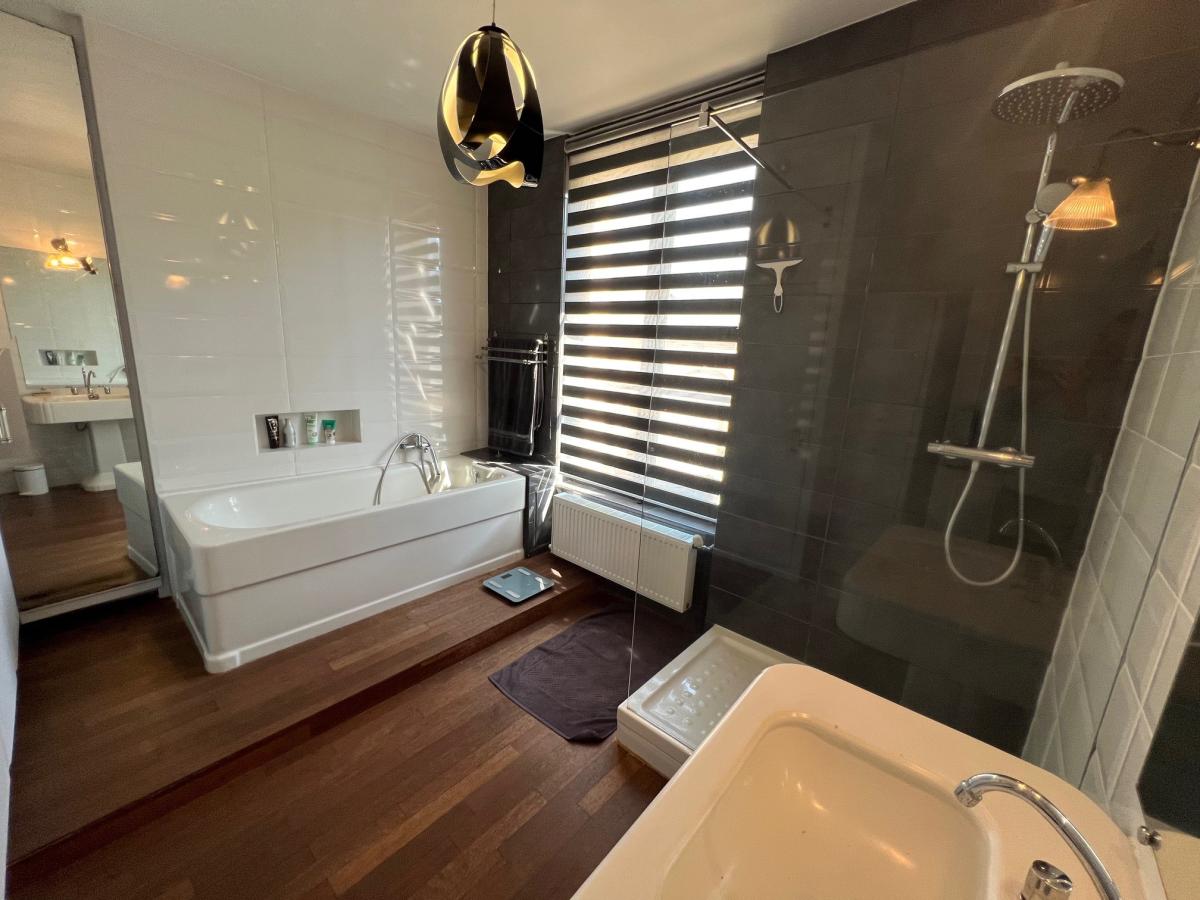 - Au 1er étage : palier, une chambre, salle de bains avec baignoire et douche, bureau, 2 autres chambres, salle de bains avec baignoire douche et wc.
