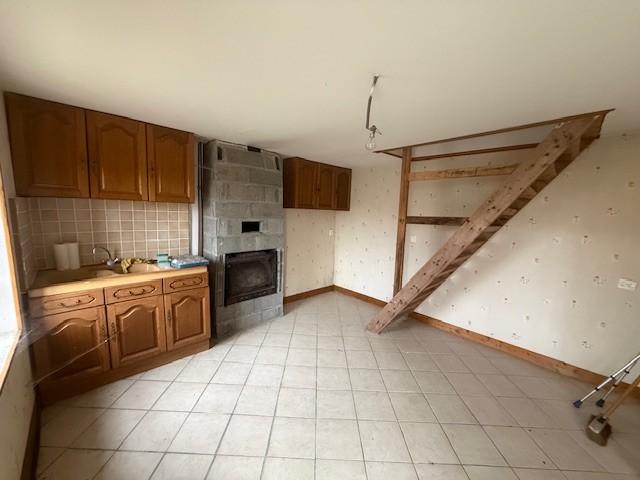 - Au rez-de-chaussée : cuisine avec coin repas, , salle à manger-salon