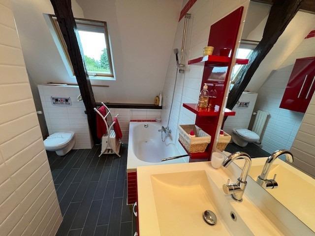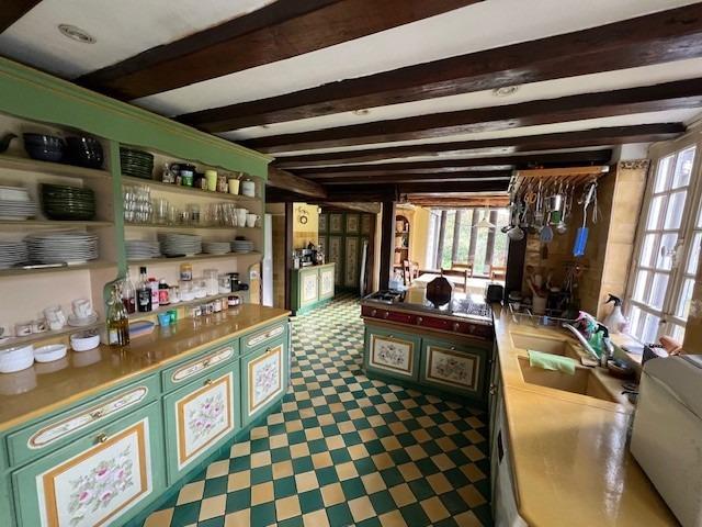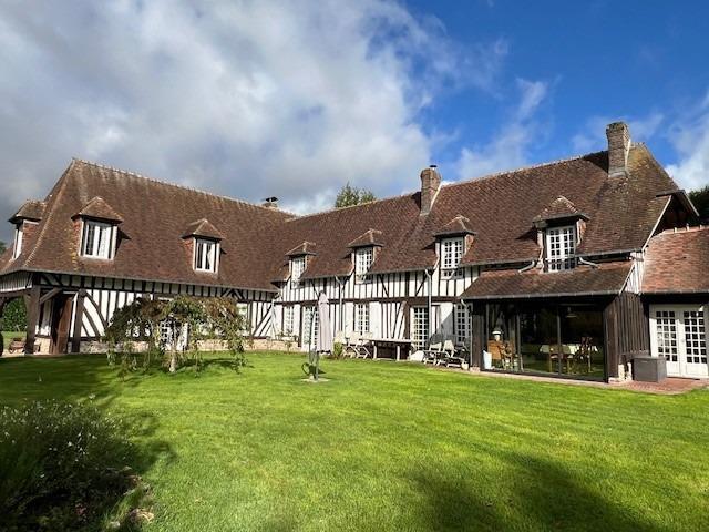 Une propriété comprenant : 1°) Une maison normande comprenant : - Au rez-de-chaussée : salle à manger, cuisine aménagée et équipée, chauffage central fuel, arrière-cuisine, buanderie, salon-salle à manger avec cheminée et poêle à bois, autre grand salon avec cheminée pierre, chambre, wc, salle d’eau. - A l’étage : 1ère partie : palier, couloir, salle de bains avec wc, salle d’eau et wc, 4 chambres. 2ème partie : une chambre, chambre avec salle d’eau, autre chambre avec salle de bains douche et wc et baignoire. 2°) Dépendance à usage de garage, atelier, chaufferie fuel, local piscine avec à l’étage salle d’eau et wc, 2 chambres, placards. 3°) Piscine 10x5 chauffée.  4°) Une maisonnette comprenant : Terrasse séjour avec cheminée Etage : salle de bains et wc. Dépendance box à chevaux ou atelier. L’ensemble sur 03ha.33a.22ca.Les informations sur les risques auxquels ce bien est exposé sont disponibles sur le site Géorisques : www. georisques. gouv. frConsultez nos tarifs : https://www.rouault-orbec.notaires.fr/tarif-honoraires.htmlMontant maximum des honoraires pratiqués par l'Office.