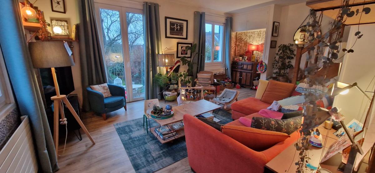 EXCLUSIVITE DPJ NOTAIRES, CAEN rue frères Michaut maison jumelée de 100m² comprenant, entrée, cuisine aménagée, salon/séjour, wc. A l'étage, deux chambres, salle de bains, pallier. Au dernier étage, bureau et chambre. Grande cave, garage, terrain de 547m².