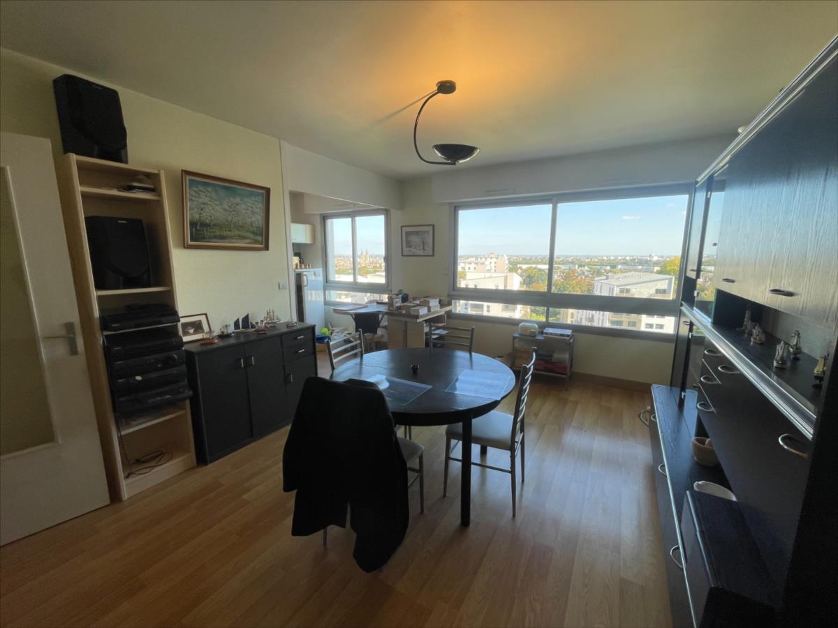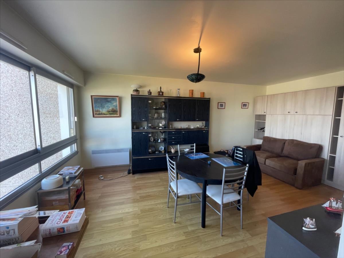 CAEN appartment F1 au 8eme dernier etage avec acsenseur trés belle vue dégagée et comprenant : entrée, placard, salle d'eau aménagée, séjour et cuisine aménagée et équipée ouverte. parquet au sol et volets éléctriques. une cave en sous-sol, parking collectif en surface. Immeuble situé : Bouverad André Detolle - 4 Résidence OLYMPIA - CAEN.Les informations sur les risques auxquels ce bien est exposé sont disponibles sur le site Géorisques : www. georisques. gouv. fr