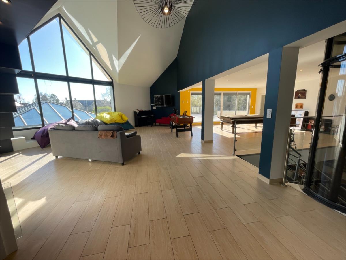 étage : Grand palier salon 100m² en mezzanine, 3 suites de 25m² - 3 chambres3 sde et 3 wc, 3 dressings,