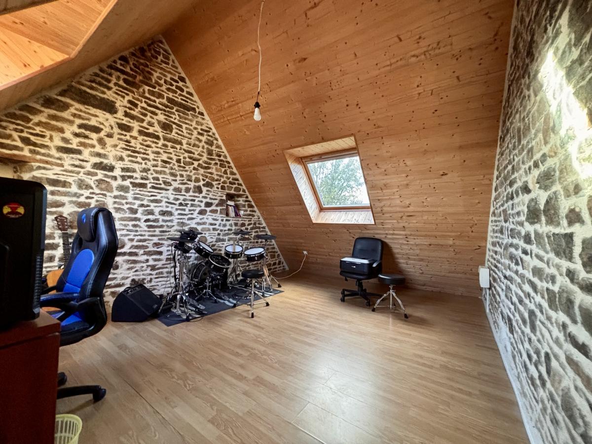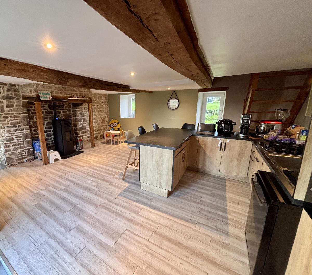 Charme et confort à la campagne Située à l’entrée de Campeaux, cette jolie maison en pierre d’environ 100 m² offre un cadre de vie paisible, à proximité des commodités, écoles et axes routiers. Elle se compose au rez-de-chaussée d’une cuisine aménagée et équipée ouverte sur un séjour chaleureux avec poêle à granulés, ainsi qu’un salon indépendant. Au premier étage, deux chambres, une salle de bains avec WC et une buanderie. Le dernier étage propose deux pièces pouvant servir de chambres ou de bureau. Cave, remise et pièce annexe pouvant être aménagée en atelier complètent l’ensemble. Le tout sur un terrain clos et arboré de 749 m², idéal pour les beaux jours. Chauffage assuré par une pompe à chaleur et poêle à granulés, menuiseries PVC double vitrage. Mitoyenneté d’un seul côté, non gênante. Un bien authentique et soigné, alliant charme de l’ancien et confort moderne. À découvrir sans tarder !