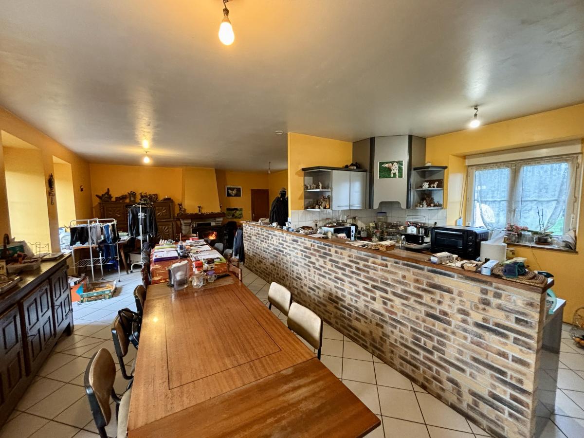1. Une maison d’habitation de type longère en pierres de 134m² habitables, rénovée en 1995 et offrant une vie de plain-pied. Elle est constituée comme suit :