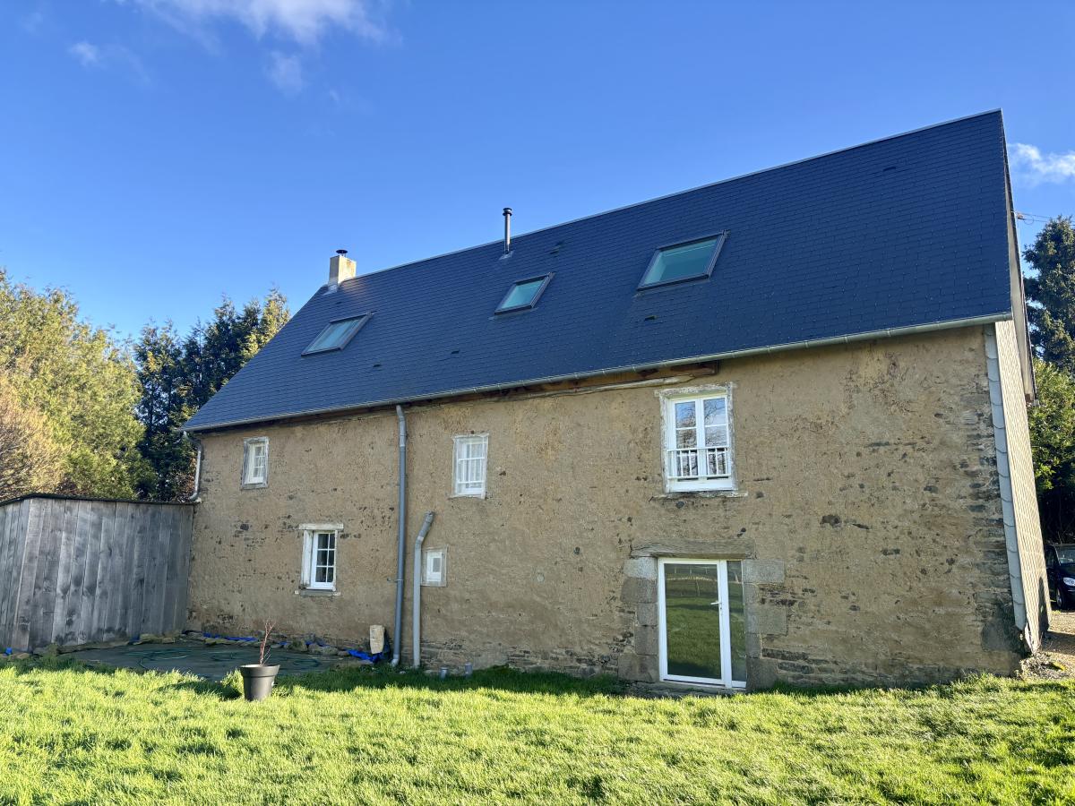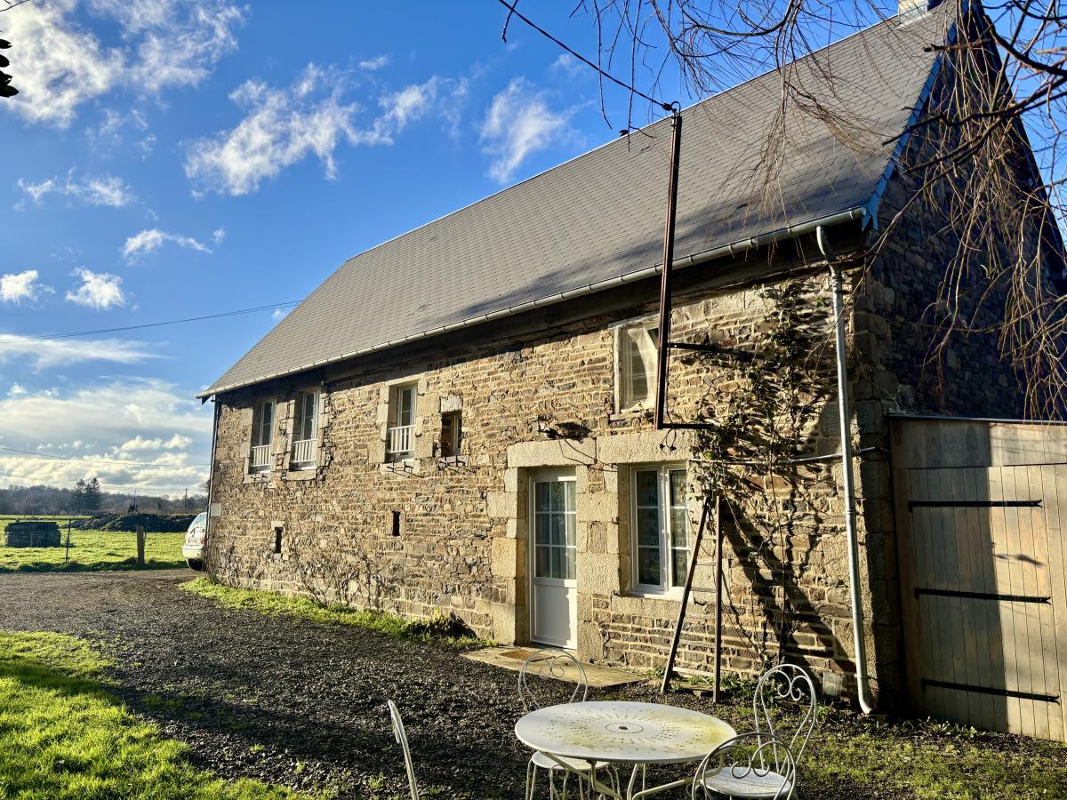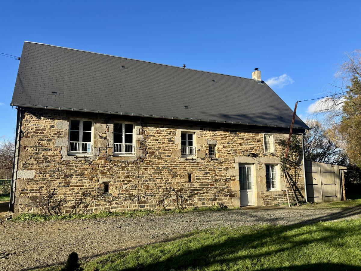 Charmante maison en pierres située à la sortie de VIRE d'environ 90m² habitables comprenant : - Au rez-de-chaussée : séjour avec poêle à bois, cuisine aménagée et équipée et cave - À l'étage : une chambre, une salle de bains avec WC - Au-dessus : chambre sur une mezzanine et grenier Garage en prolongement de la maison. Le tout édifié sur un joli terrain de 2 739m².