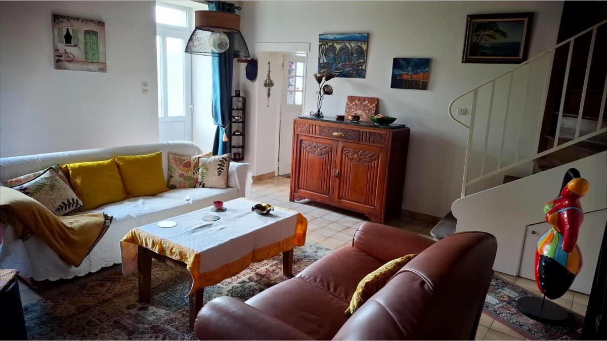Une charmante maison en pierre rénovée, située en campagne à environ 6 km des commerces de Quettehou et à 6 km de la mer.Elle est composée de :- au rez-de-chaussée : salon-séjour avec cheminée poêle à bois, cuisine aménagée et équipée avec espace repas, arrière cuisine-buanderie, WC.- à l'étage : palier, deux chambres, salle d'eau avec WC. Une troisième chambre avec escalier indépendant.En prolongement, une ancienne habitation d'environ 15 m² au sol offrant des possibilités d'extension ou de développement.Agréable jardin clôturé devant exposé au Sud.Grande dépendance/garage à la suite d'environ 65 m² au sol.