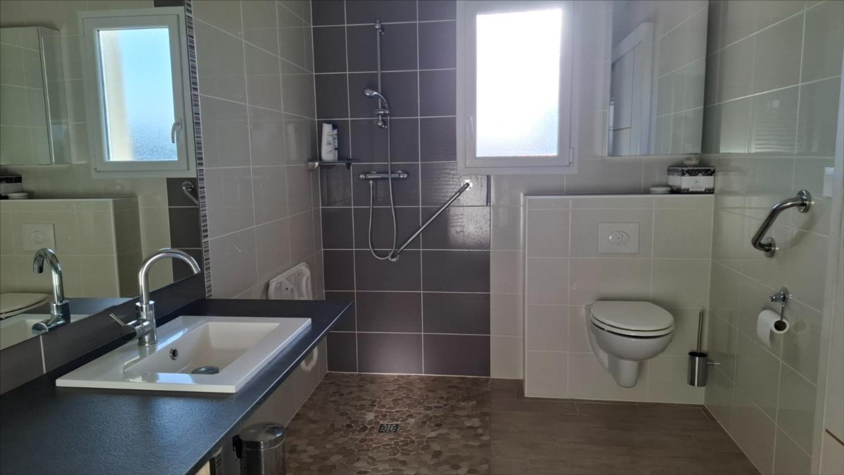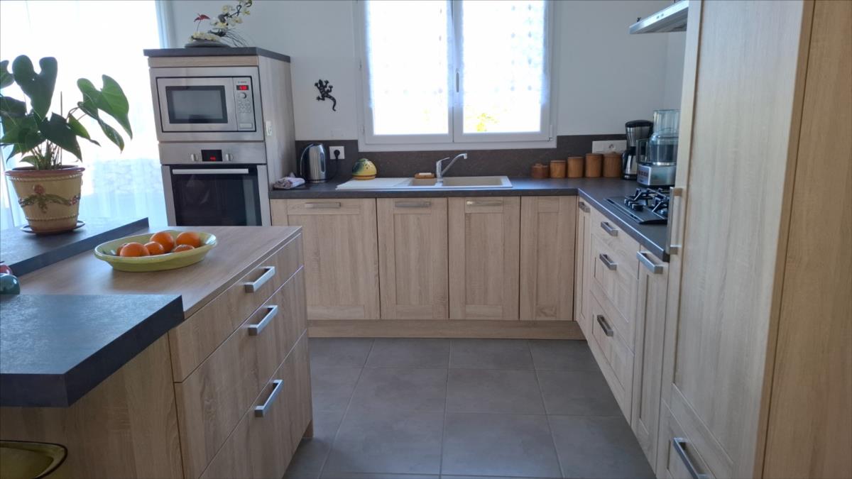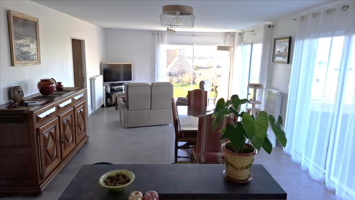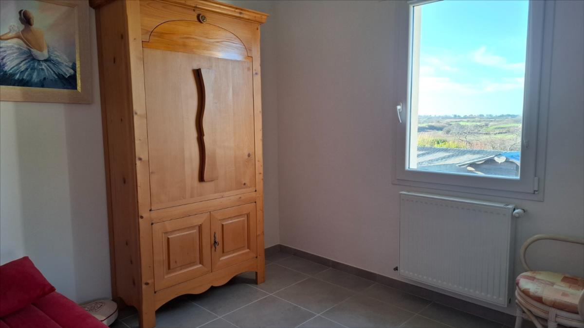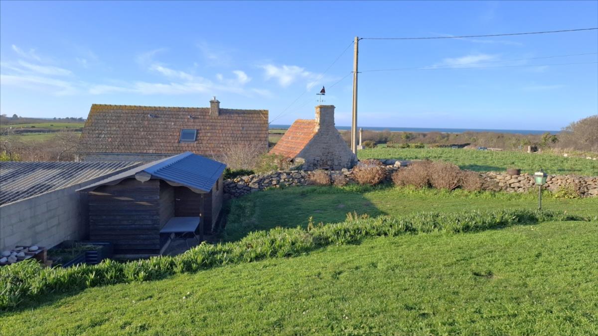 Avec une vue sur la mer, à 1.2 km de la plage et à moins de 5 kms des commercesPavillon de 2016, en parfait état, offrant une autonomie de plain-pied, composé de :. Au rez-de-chaussée : entrée desservant une belle pièce de vie (salle - salon) avec vue mer, cuisine ouverte aménagée et équipée, deux chambres, salle d'eau (douche à l'italienne), arrière-cuisine.. A l'étage : combles aménageables.Grand garage avec partie buanderie et grenier au dessus.Cour d'accès bitumée, jardin autour sur lequel cabanon de jardin.Pompe à chaleurCuve récupération eaux de pluie enterréeAspiration centraliséeAssainissement individuel conforme.