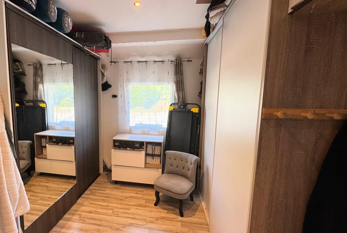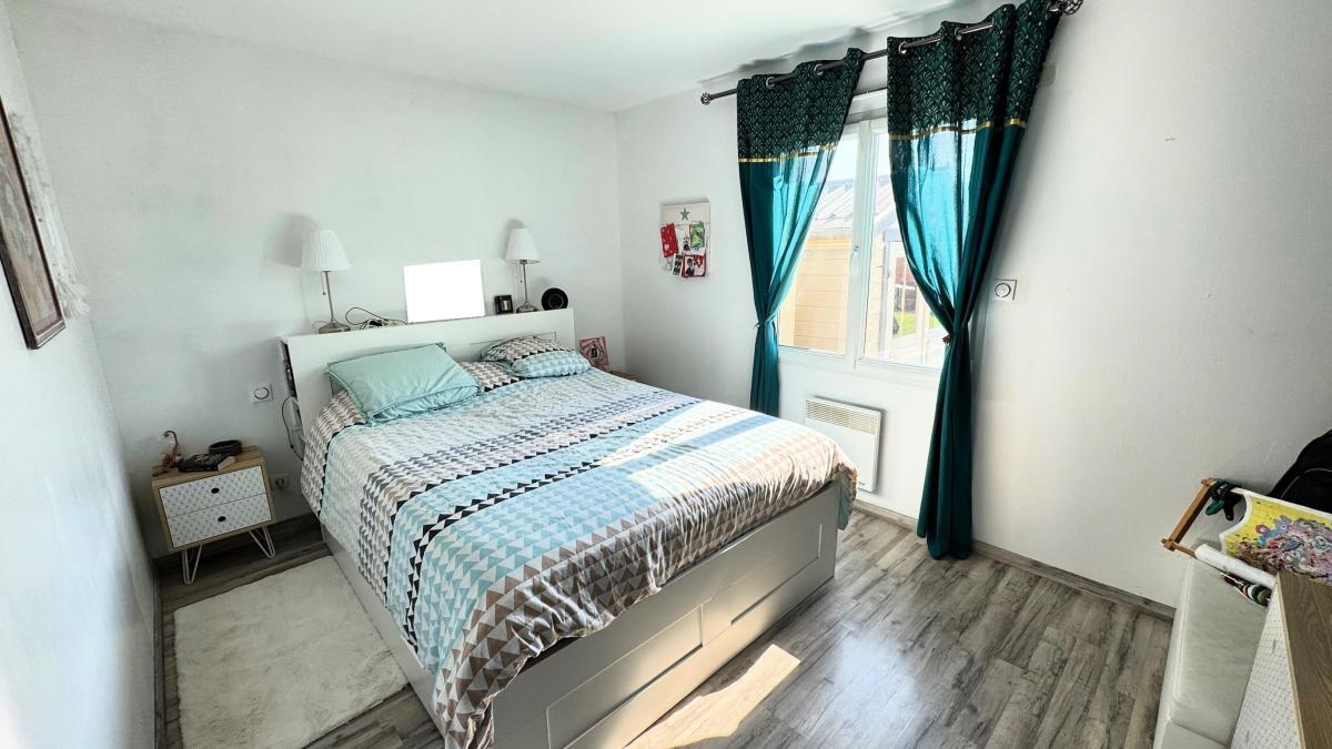 - Au rez-de-chaussée : hall d’entrée avec placard, cuisine de 11m² aménagée et équipée (frigo, hotte, plaque induction, micro-onde, four) ouverte sur séjour/salon de 36.88m², salle de douche donnant sur buanderie, chambre de 12.36m², WC avec lave-mains.