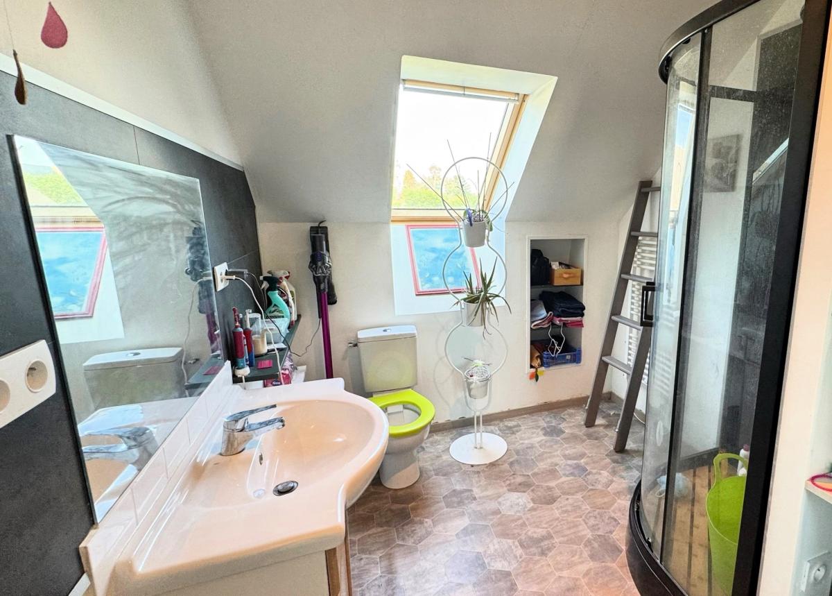 - A l’étage : trois chambres, palier, salle de douche avec WC.