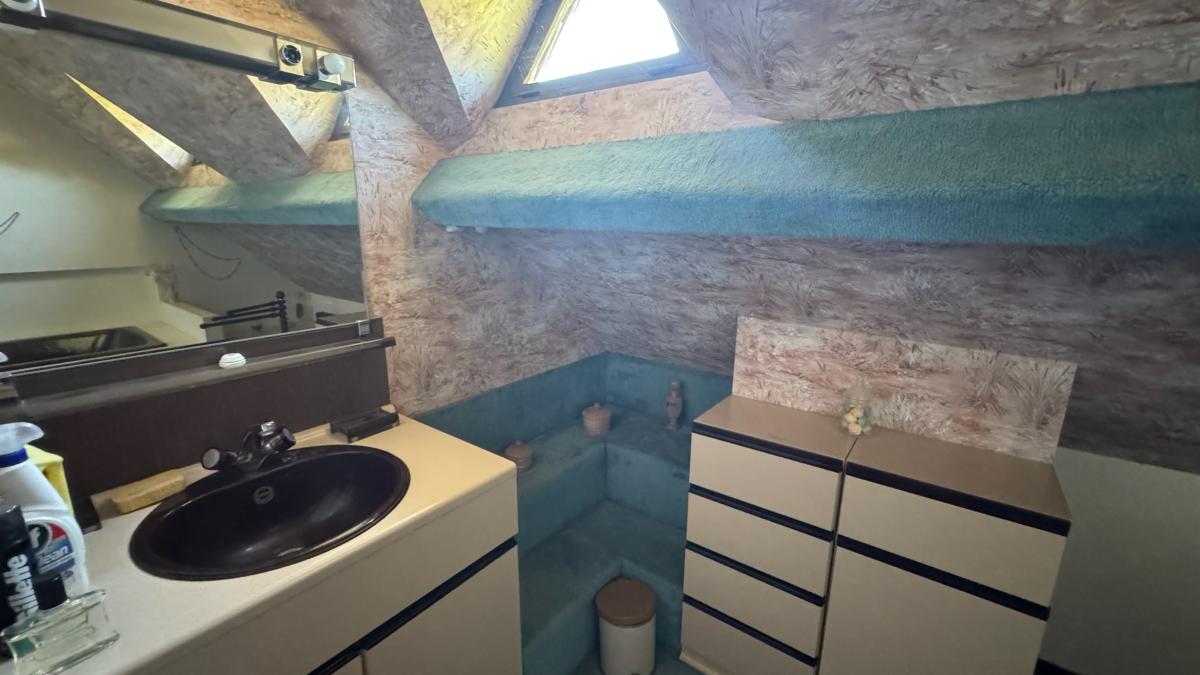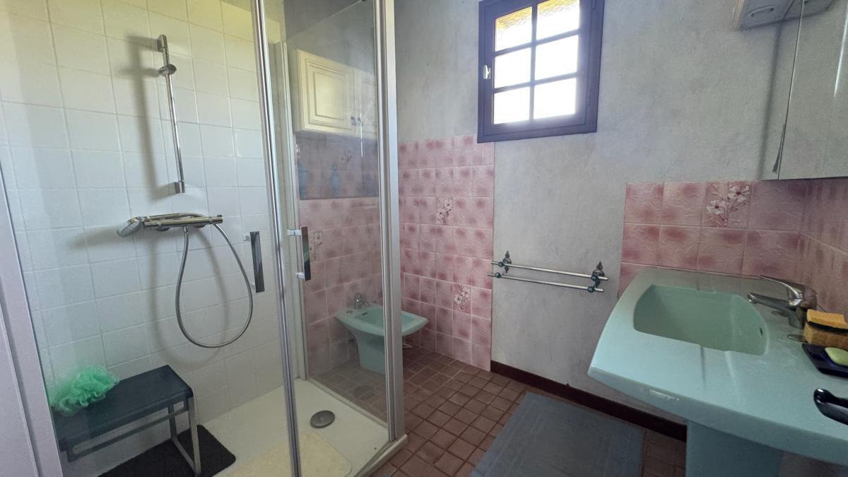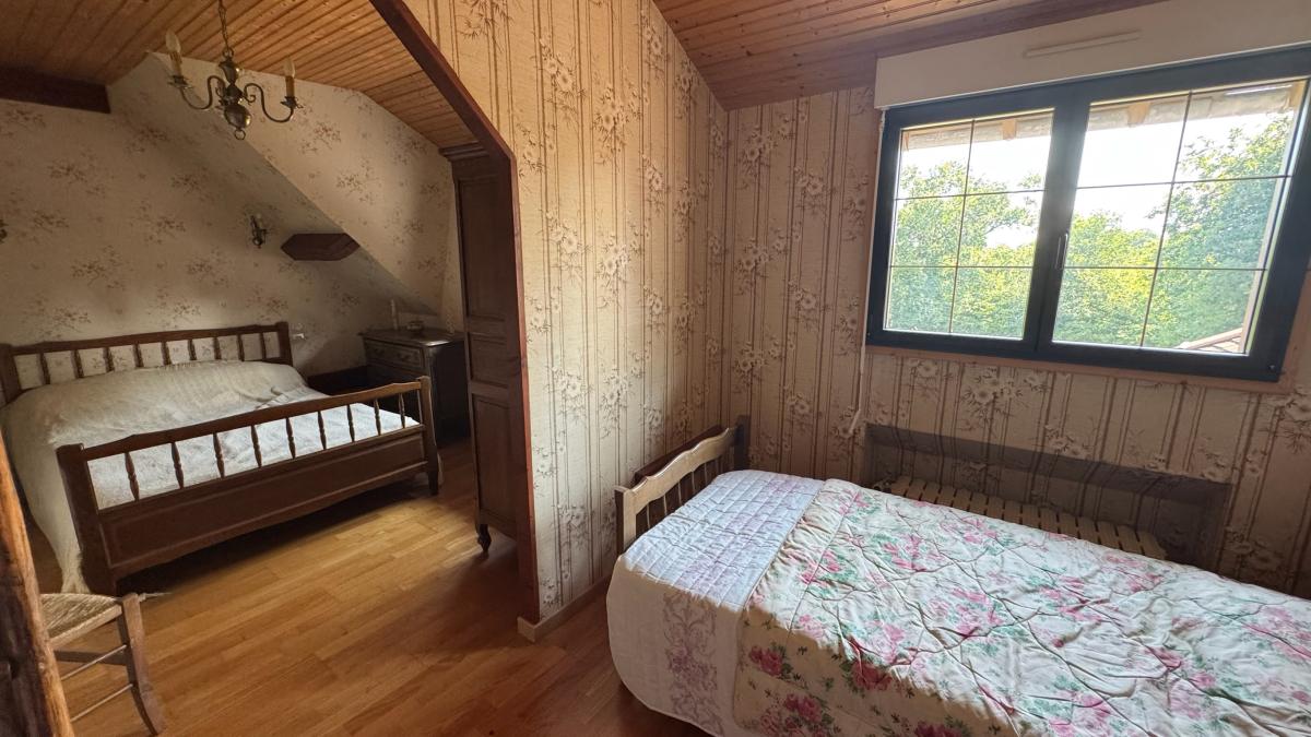 - A l’étage : grand palier, dégagement, deux chambres (15m² et 13.7m²), salle de bains de 4.5m², WC.