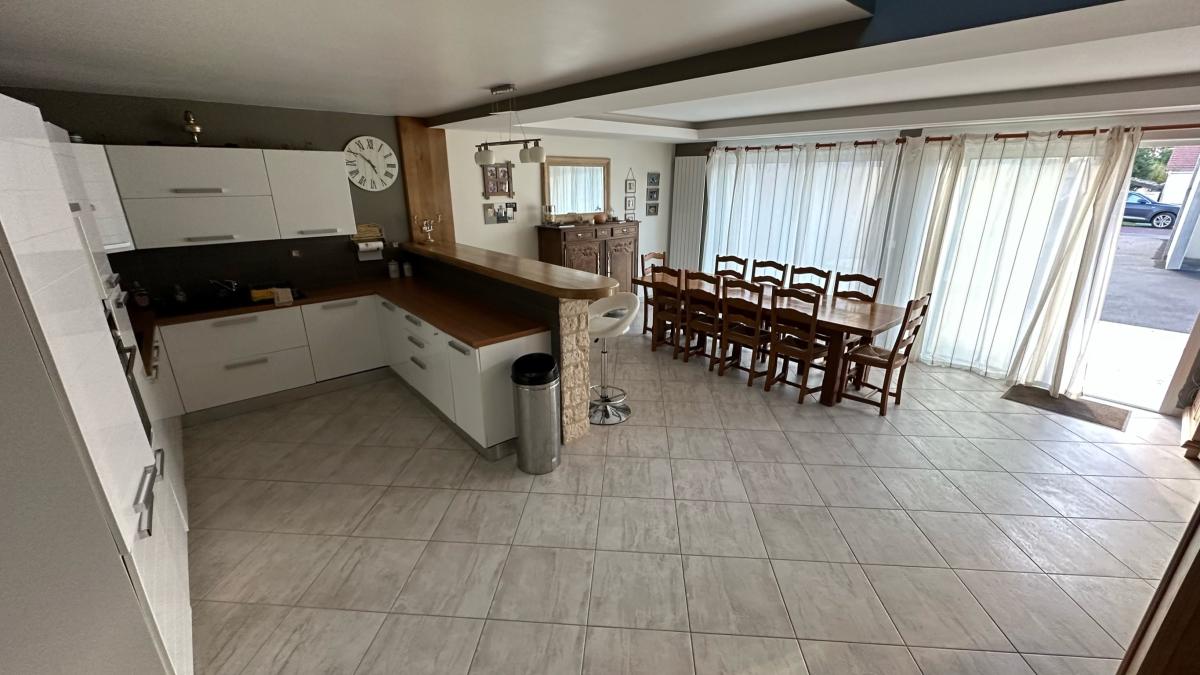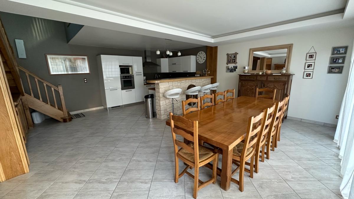 - Au rez-de-chaussée : entrée dans pièce à vivre de 43m², cuisine ouverte, chambre de 9m², salle de douche, WC