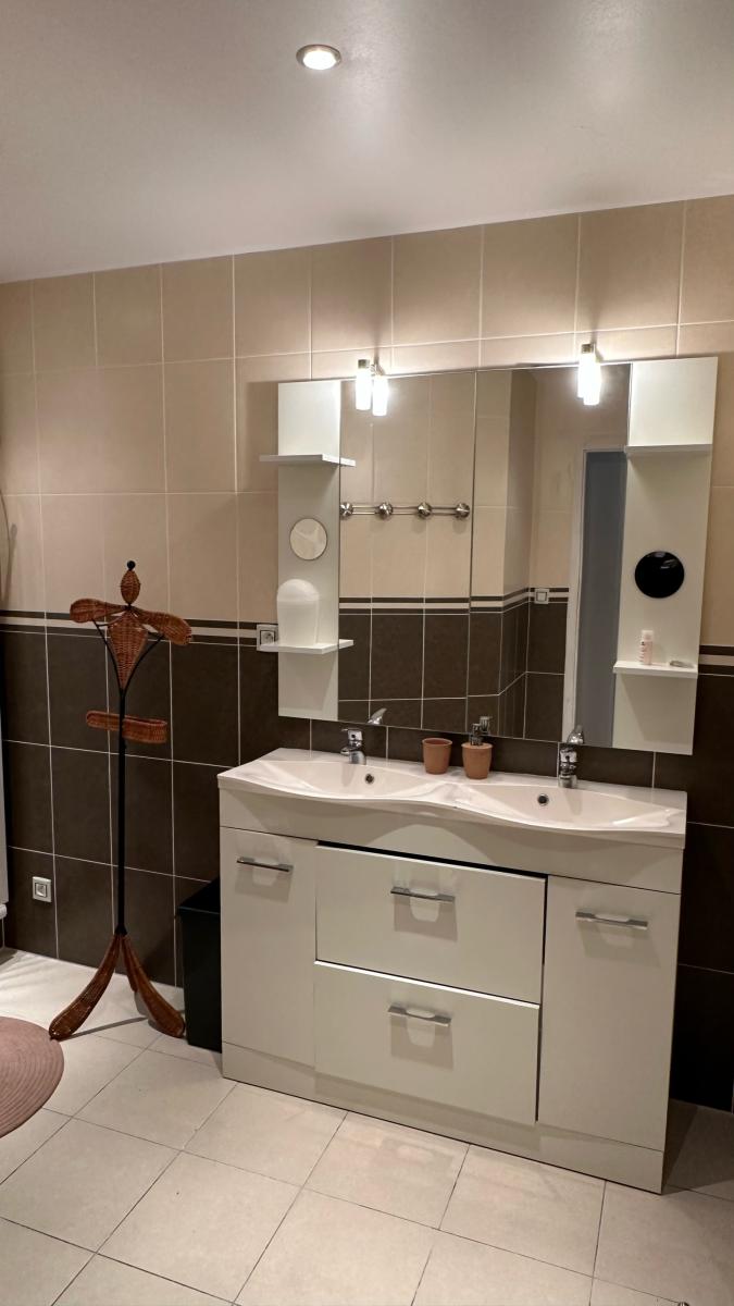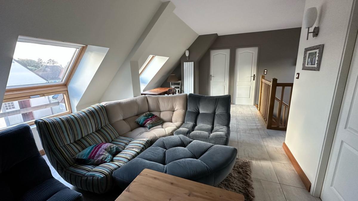 - A l'étage : salon d'étage, deux chambres (10,9m² et 9,3m²), salle de douche, WC