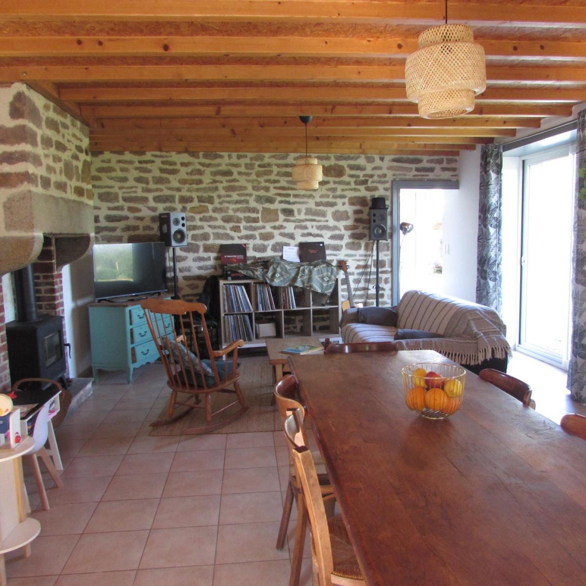 Maison en pierre comprenant :  -  Au rez-de-chaussée, une entrée, séjour-salon-cuisine ouverte, buanderie, salle-d 'eau , WC ; -  A l'étage, trois chambres, salle d'eau, WC. Garage avec grenier. Carport sur un terrain de 835m².