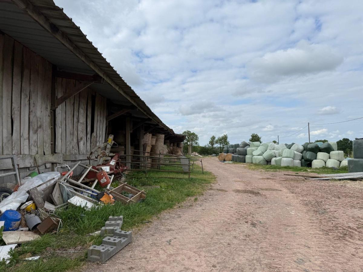 Dans hameau, Maison en pierres mitoyenne d'un côté, comprenant : - Rez-de-chaussée : entrée sur cuisine avec cheminée, séjour salon avec cheminée, une chambre, dégagement, cellier/buanderie, salle d'eau, WC ; - Etage : palier desservant deux grandes chambres. Grenier. Terrasse et cour sur laquelle dépendance à usage de garage et atelier. Parcelle à délimiter par géomètre. Stabulation d'environ 1800 m² avec environ 4 hectares de terrain. Possibilité d'acquérir plus de terrain (12 000 € l'hectare). Terrain et bâtiment libre de toutes locations. Terrain à délimiter par géomètre (à la charge du vendeur). Les informations sur les risques auxquels ce bien est exposé sont disponibles sur le site Géorisques : www. georisques. gouv. fr