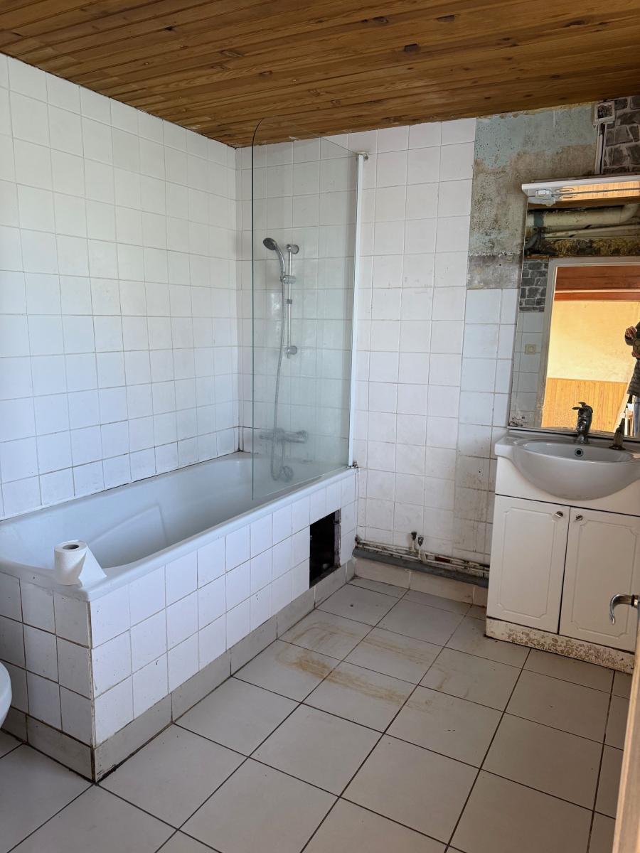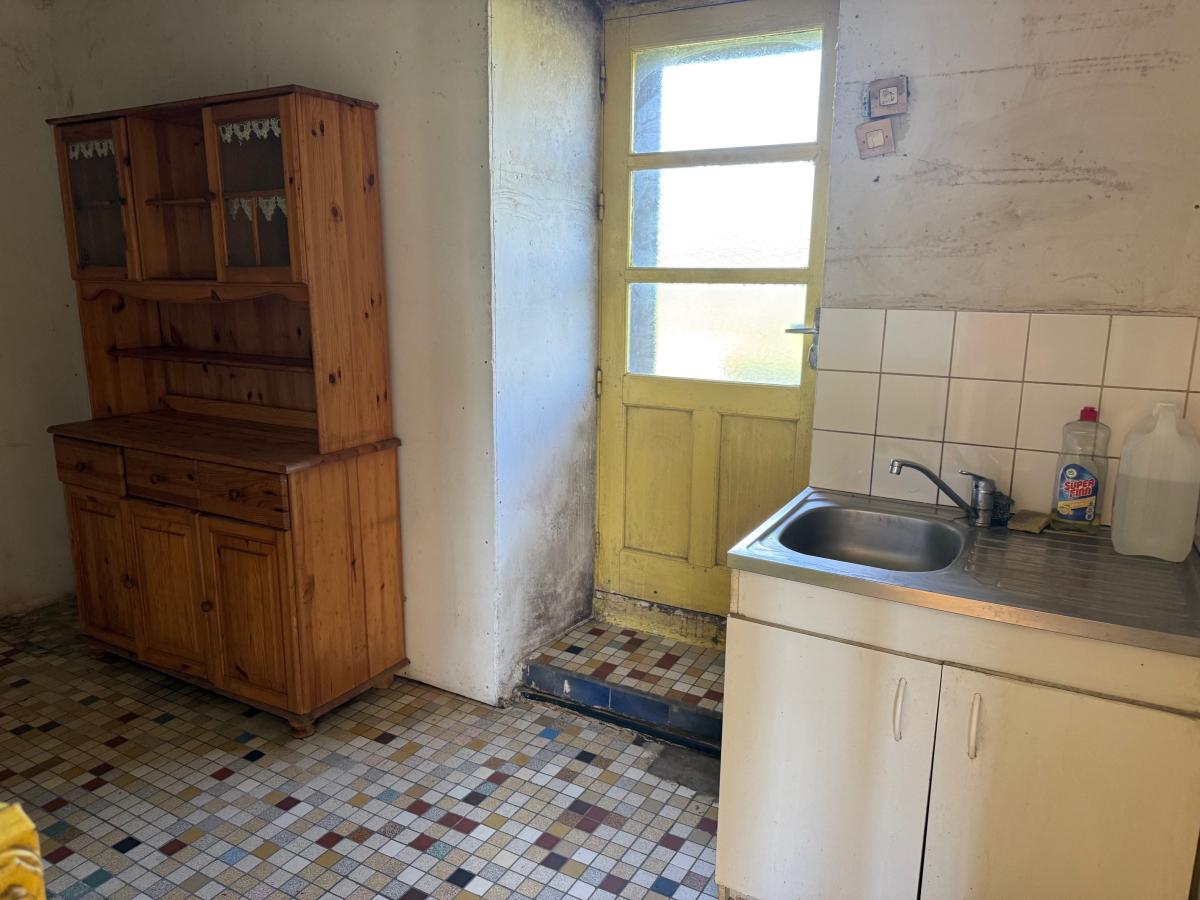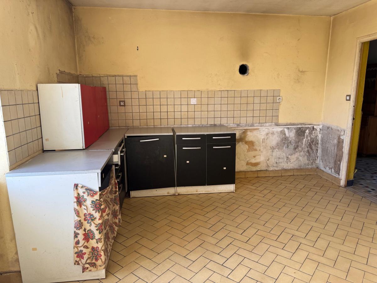 Dans environnement campagne, Maison à rénover, comprenant : - Rez-de-chaussée : entrée, séjour salon, cuisine, salle de bains/WC, buanderie/cellier, chaufferie ; - Etage : palier, quatre chambres, bureau, WC. Grenier. A la suite, double garage, cave et atelier. En appentis : atelier. Dépendance à usage d'atelier et cave. Cour et terrain.