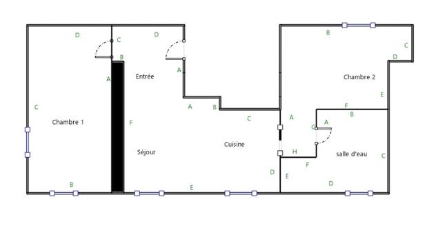 Entrée, séjour-salon ouvert sur cuisine aménagée, salle d'eau et WC, une chambre et autre pièce pouvant servir de chambre d'enfant ou de bureau.