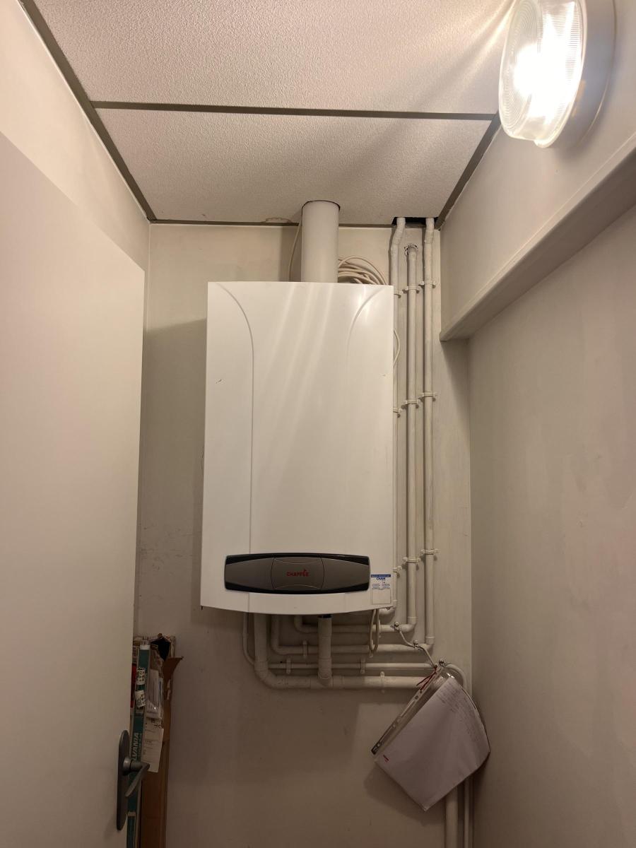 Chauffage central au gaz de ville. Ballon d'eau chaude électrique.