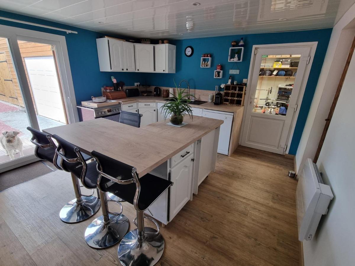 Au rez-de-chaussée : entrée dans séjour/salon avec poêle à bois, cuisine aménagée et équipée, arrière-cuisine/buanderie, wc, une chambre, salle de bains avec wc, une autre chambre.