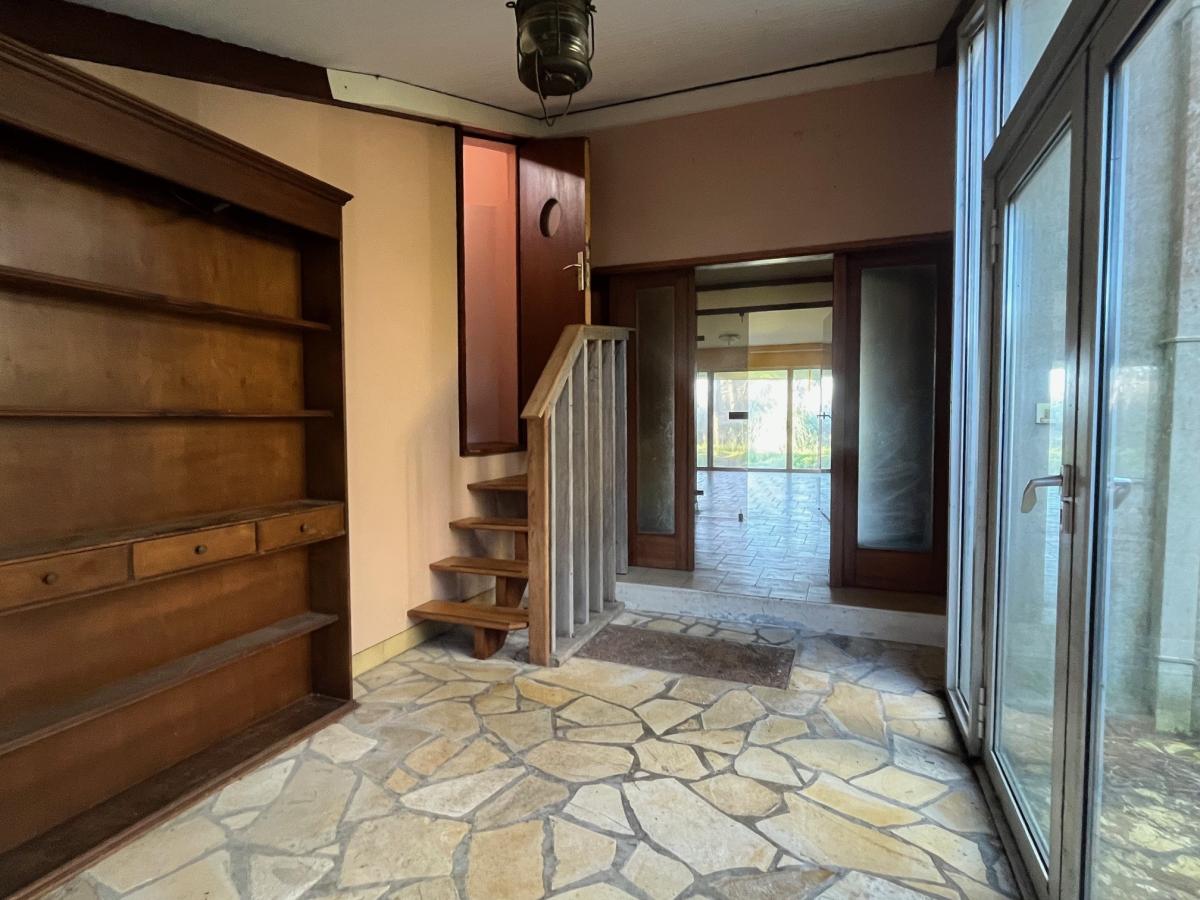 Elle comprend : au rez-de-chaussée : une entrée, un séjour / salon avec cheminée, une cuisine, un couloir qui dessert 2 chambres, un bureau, une salle de bains, wc, ainsi qu'une salle d'eau avec wc.