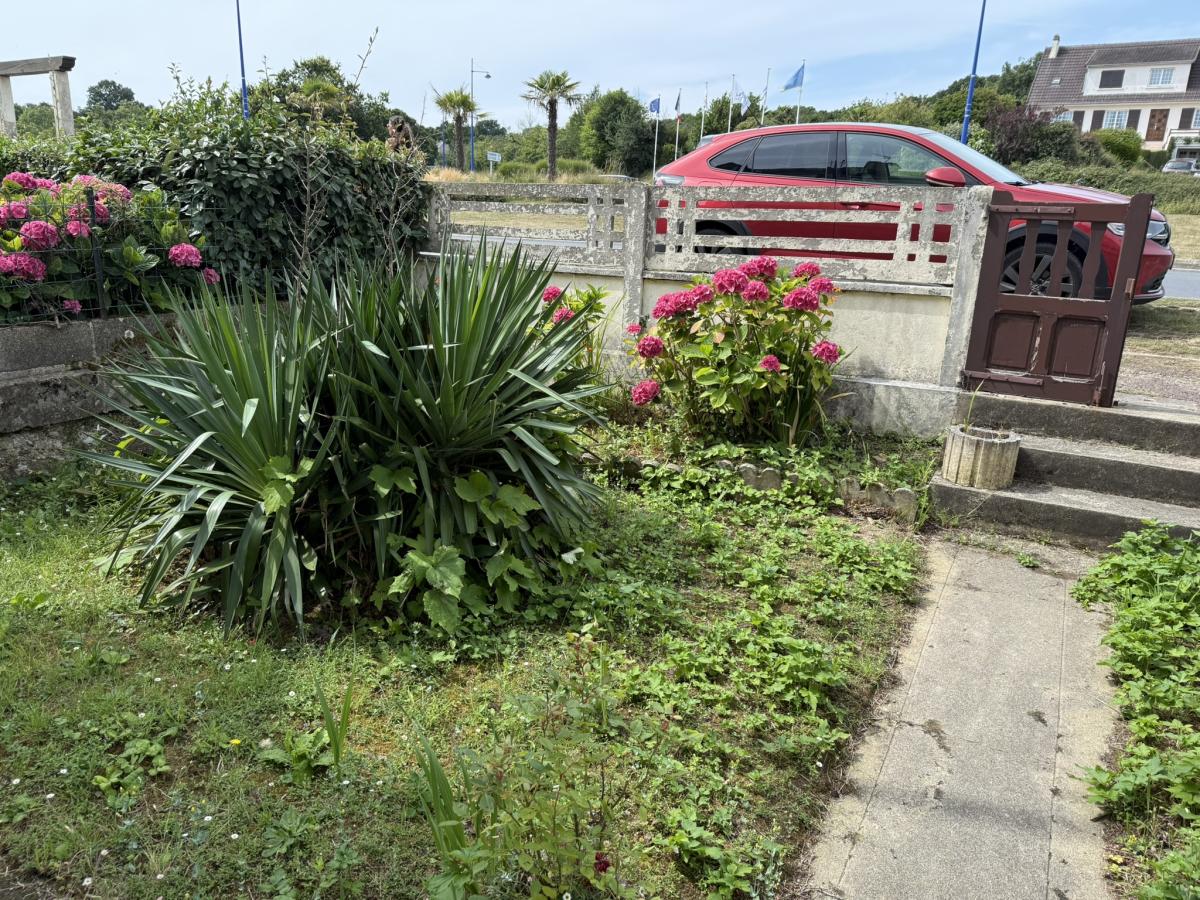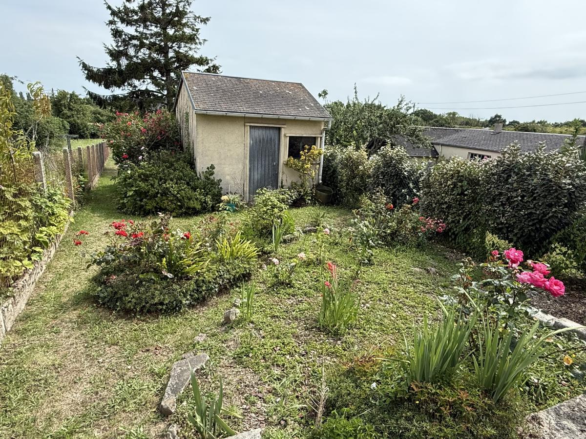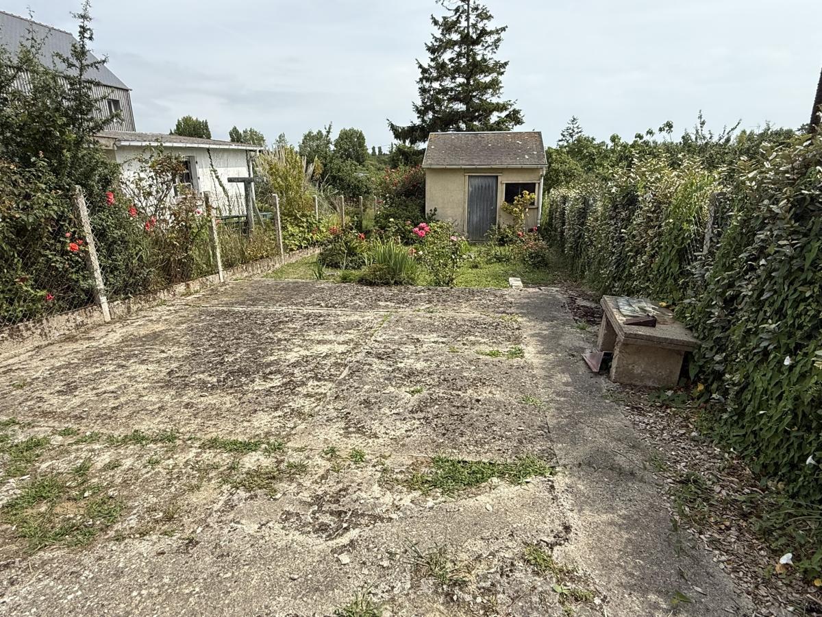 Cour devant et jardin derrière avec terrasse + cellier + cabanon + accès véhicules.