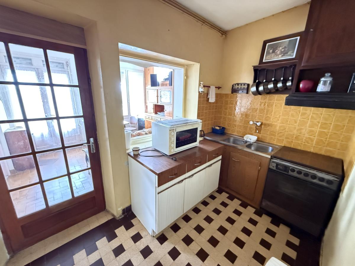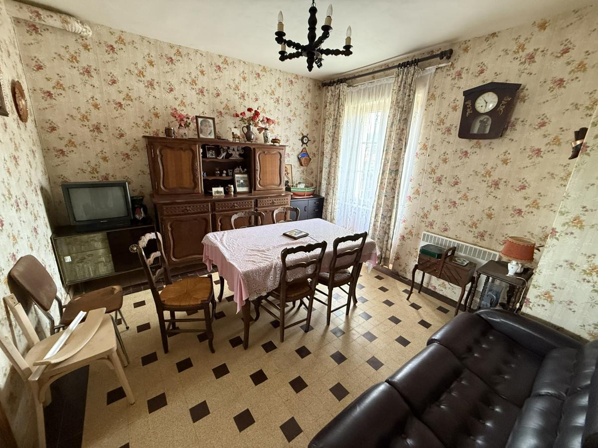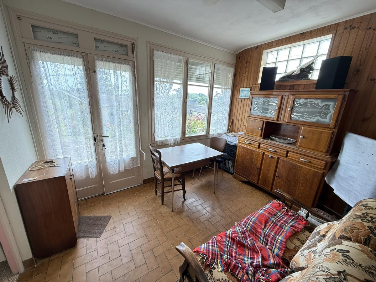 Cour devant et jardin derrière avec terrasse + cellier + cabanon + accès véhicules.