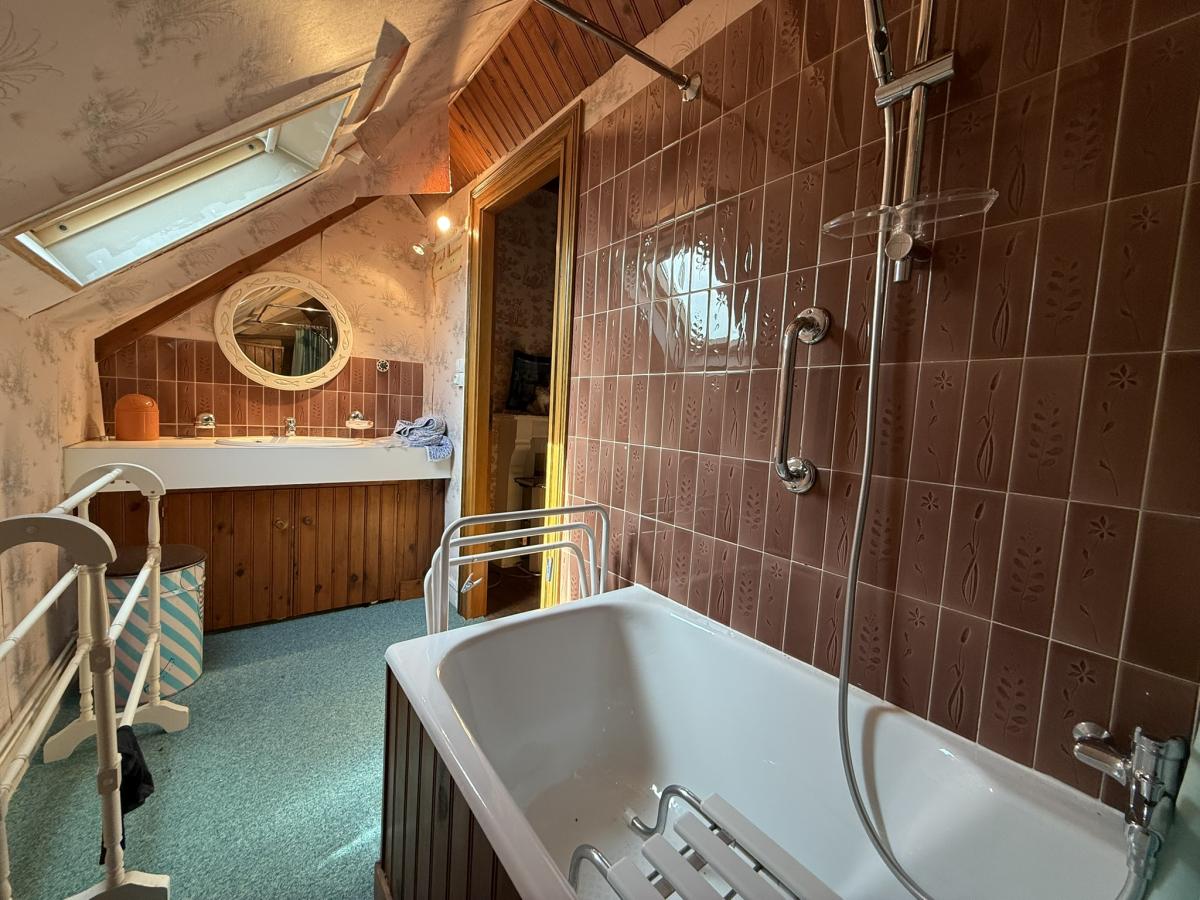 - Au rez de chaussée surélevé: porche d'entrée, WC, séjour avec cheminées et coin-cuisine.