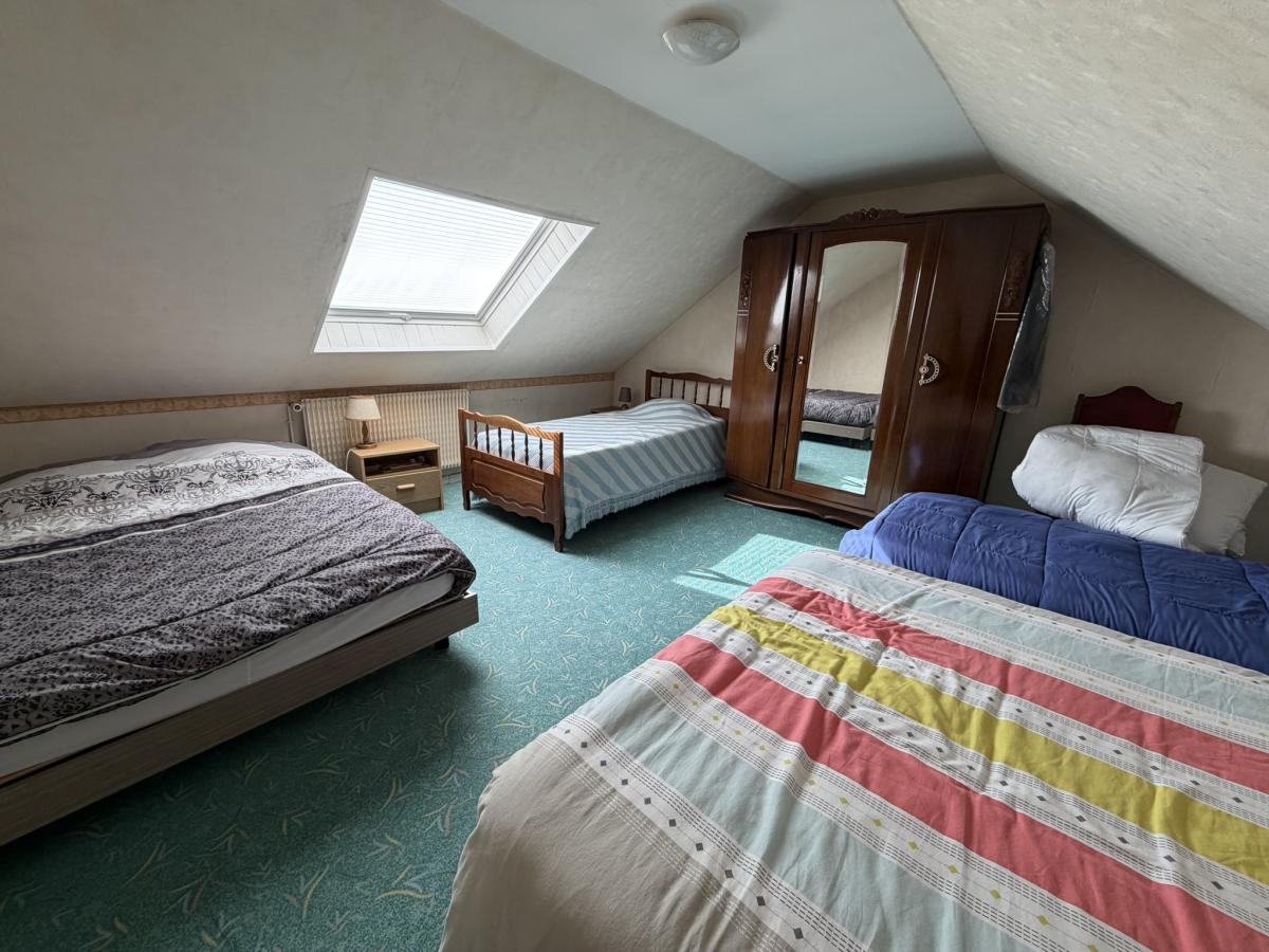 - Au rez de chaussée: petit sas, entrée, séjour avec poêle à bois, cuisine équipée, véranda, deux chambres, salle d'eau, WC.