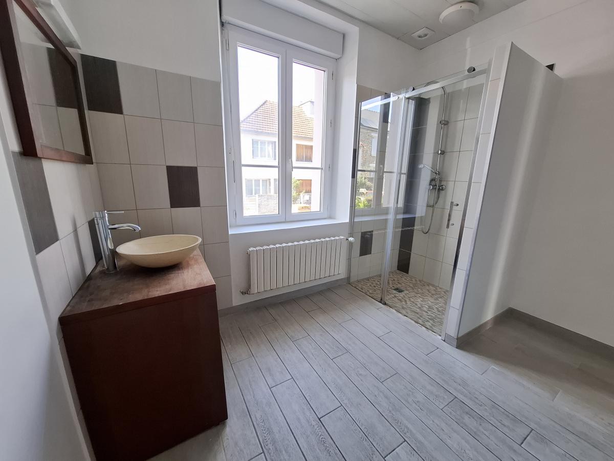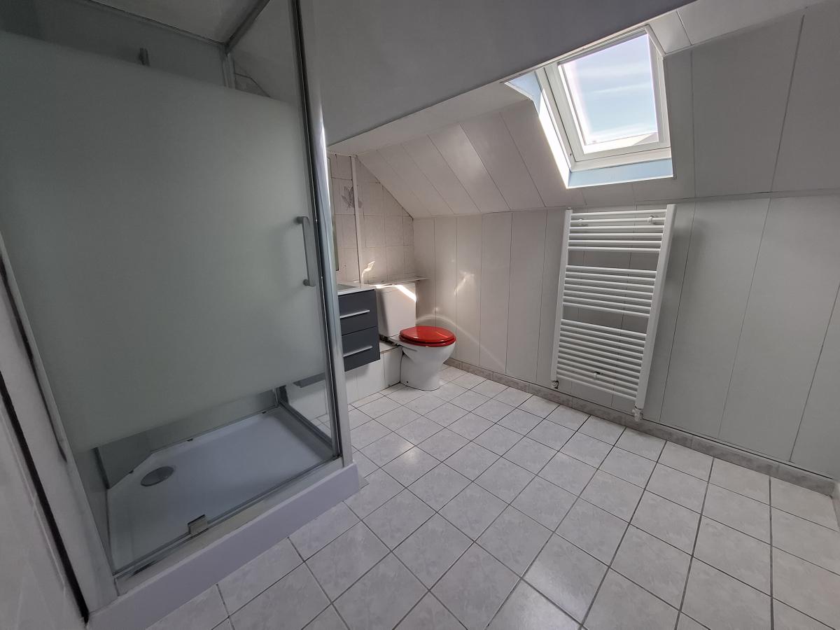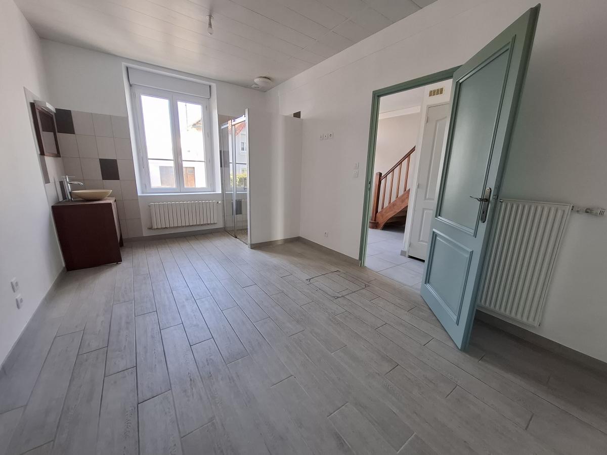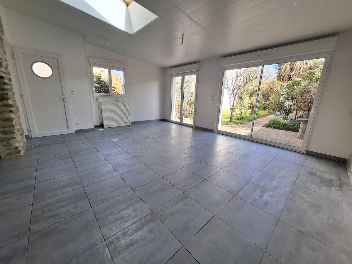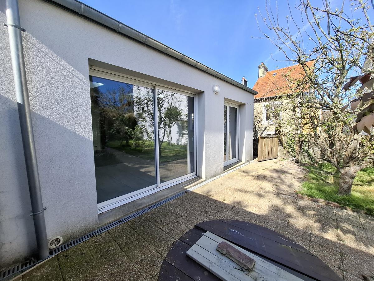 RDC: entrée, WC avec lave-mains, une chambre avec salle d'eau privative, cuisine et belle pièce de vie en extension sur jardin.