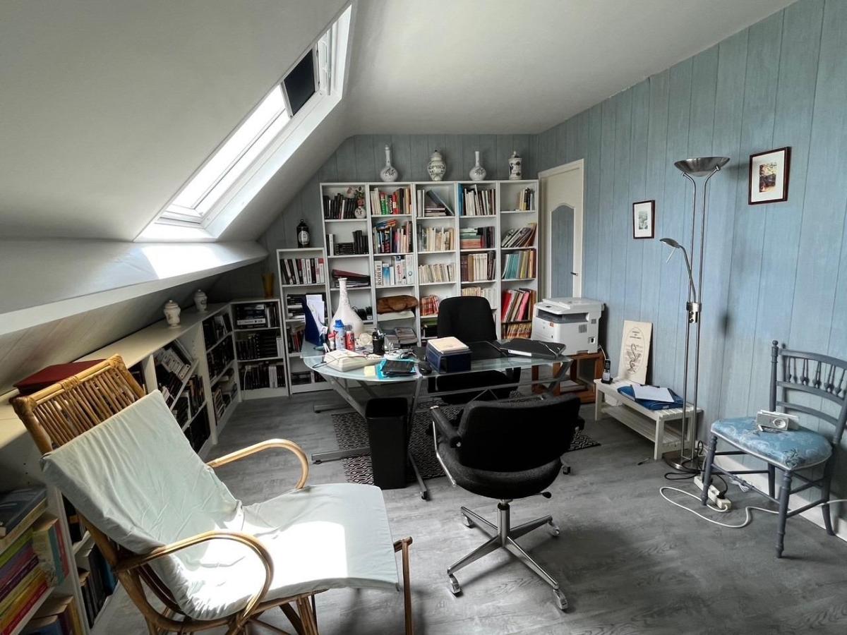 Face au marais, maison d'habitation en pierres couverte en ardoises, comprenant : Hall d'entrée avec départ d'escalier, salon avec cheminée 33 m² (pierres apparentes), salle à manger avec cheminée 30 m², cuisine équipée (éléments hauts et bas, plaque de cuisson, hotte, four, lave-vaisselle) avec grande baie, arrière cuisine, buanderie, wc avec lave-mains, douche, A l'étage : trois chambres avec placard 12 m², 12 m² et 15 m², salle de bains (baignoire, douche, deux vasques), wc, Sous combles : bureau 15 m², une chambre 20 m², salle de douches, wc,