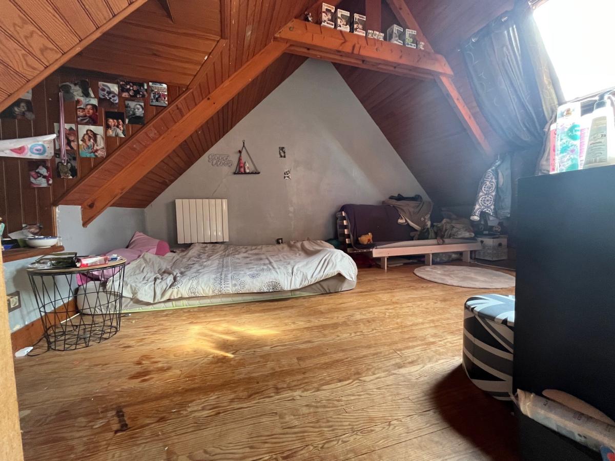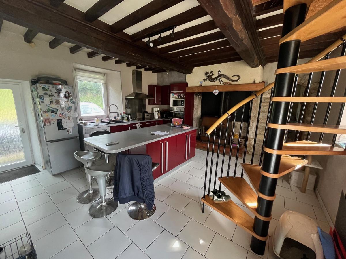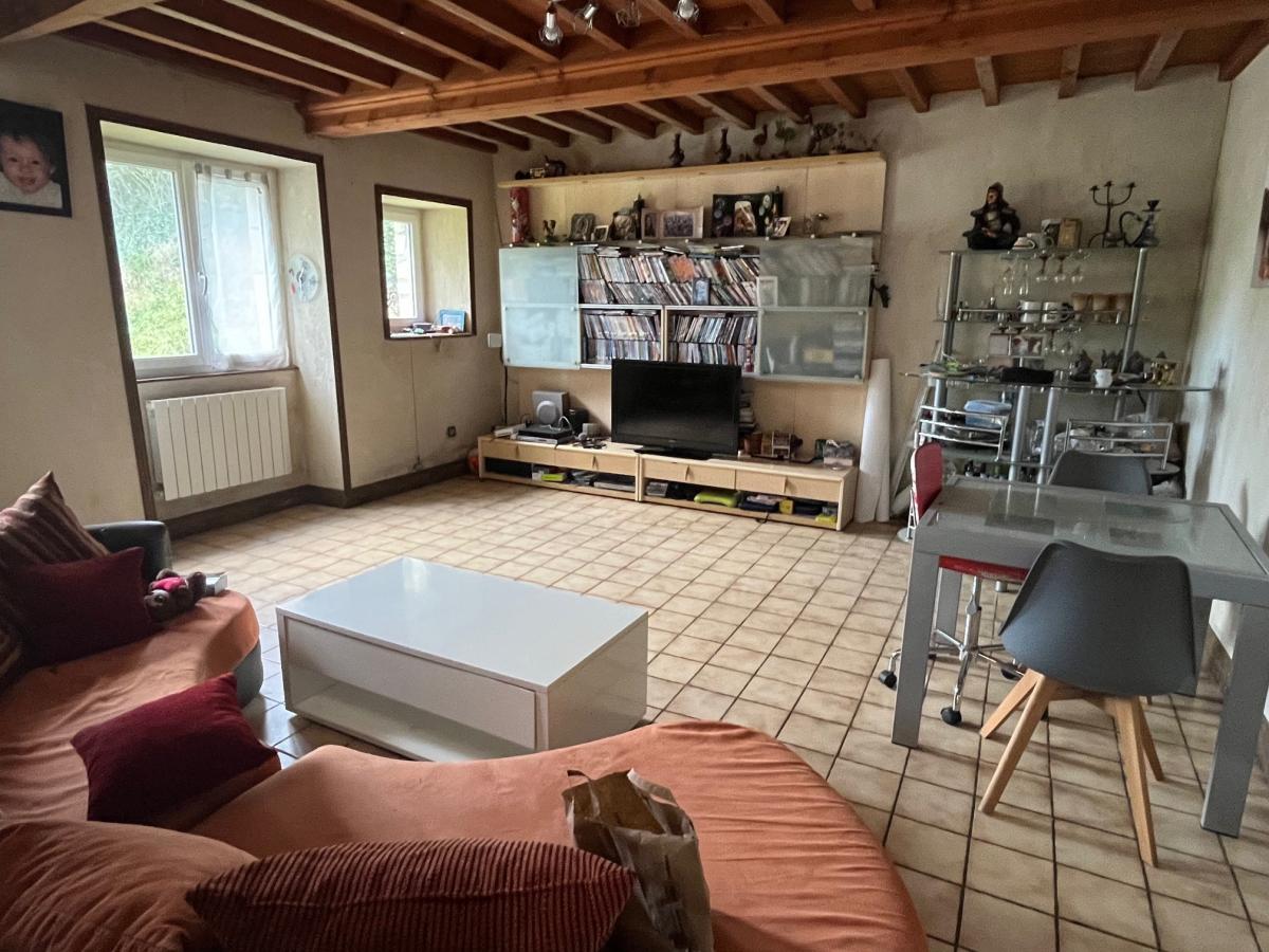 Méautis, maison d'habitation en pierres et masse couverte en ardoises, comprenant : Cuisine avec cheminée (poêle à bois) 24 m², séjour avec départ d'escalier 20 m², une chambre en mezzanine sur le dessus, salle de bains avec wc, A l'étage deux chambres, Cellier attenant Terrain 800 m²