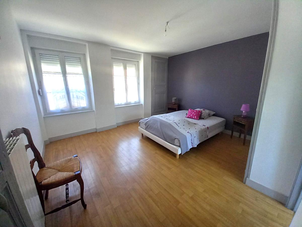 Maison de ville rénovée comprenant RDC : cuisine aménagée avec espace repas (34 m²) - autre pièce attenante à usage de salon ou salle à manger (42 m²) - salle d'eau avec WC. Etage : deux chambres dont une avec salle d'eau et WC - bureau -Grenier au dessus. Cave. Garage avec grenier. Chauffage central gaz de ville. Menuiseries PVC, porte garage motorisée. Tout à l'égout.
