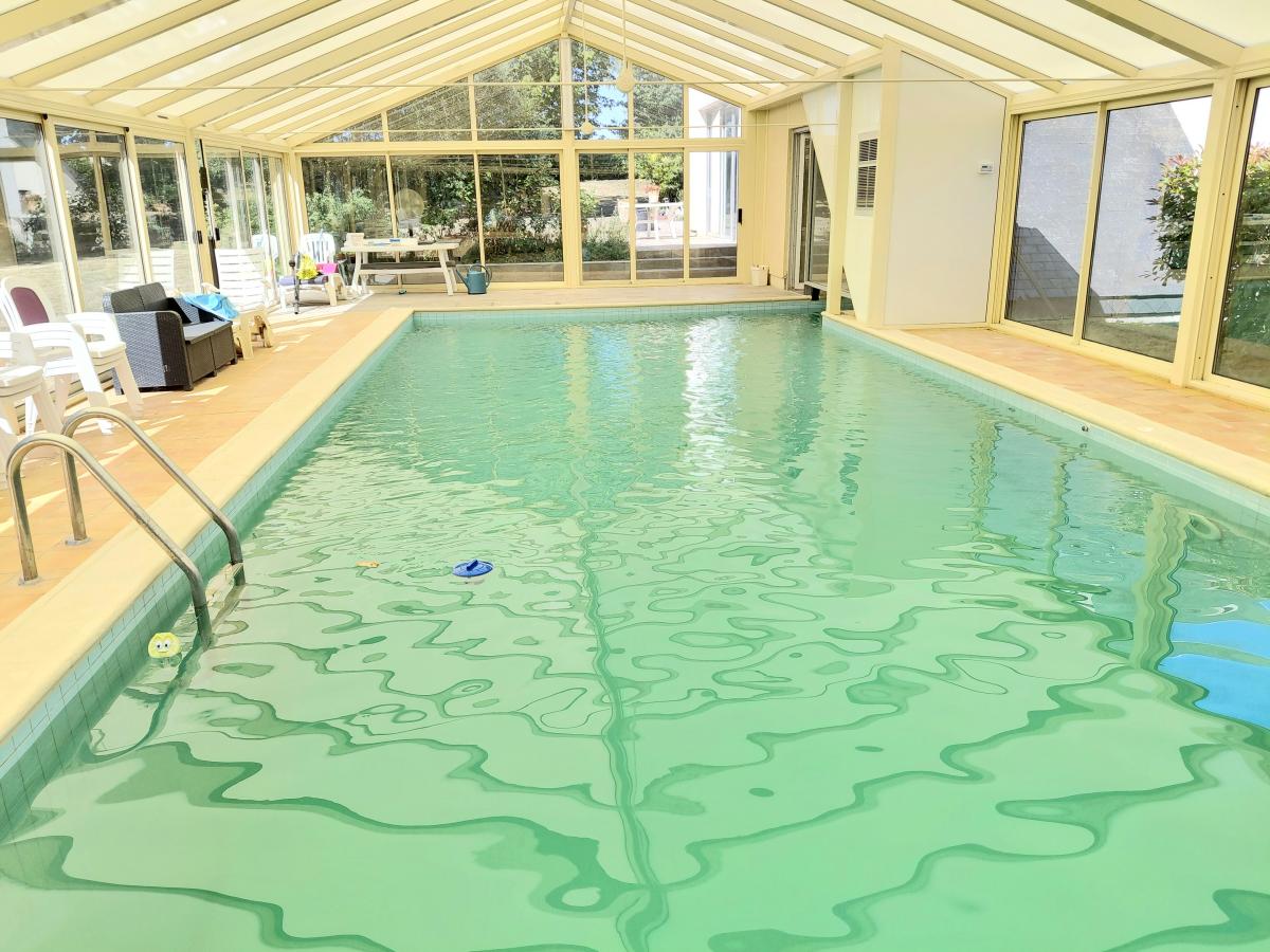 Piscine couverte par une véranda de 140 m², entièrement vitrée, avec vue sur le jardin